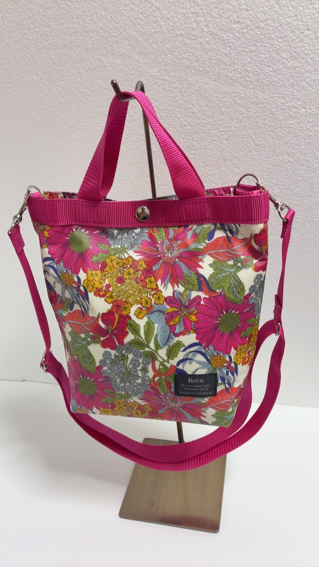 【Final Edition(ファイナルエディション)】 長くご好評いただいた「シンプルエアリー」仕様は、在庫限りの販売となります。 「シンプルエアリー」は、ファスナーなし・軽やかでシンプルなデザインが特徴のトートバッグ。 今後は、 ⚫︎ファスナー付きポケット仕様の 「スタイリッシュセキュア」 と、 ⚫︎ファスナー付きポケット+ファスナー蓋仕様の「ロイヤルガード」 へと統一いたします。 軽やかでシンプルな使い心地をお楽しみいただけるのは今回が最後。 ぜひこの機会にお手にとってください。 ⸻ ●スタンダード柄⚫︎ 「Recoの定番人気コレクション」 時を超えて愛される、上質なライン。 どんなスタイルにも美しくなじみ、永く寄り添ってくれる存在です。 セミオーダーの場合は、お仕立て料金を頂戴しております。 下記の6柄につきましては、お仕立て料金を無料とさせていただいております。 ⚫︎アンジェリカ・ガーラ(マゼンダ/グレー/ピンク) ⚫︎スウィム・ダンクレア(ブラック/レッド) ⚫︎ワイルドフラワーズ(ホワイト) そのため、お仕立て料金のかからない完成品はよりおすすめです。 お気に入りの柄に出会えた際は、ぜひその機会をお見逃しなく。 ⸻ 雨の日はもちろん、汚れてもさっと拭き取れ、 全面アルコール除菌も可能なラミネート素材を使用。 実用性と扱いやすさを兼ね備えたリバティプリントのトートバッグです。 ⸻ 【サイズ感】 ペットボトル・長財布・スマホ・ペンケース・A5サイズのものなど立てて入れて、出し入れがスムーズ。 ミニマル派、スマートな使い勝手がお好みの方に! 【ショルダーについて】 ショルダーは、取り外し可能です。 外した際は、Dカンは見えないように隠れます。 引っ掛け部分は、ねじれることのない、360度回転。 両手を使いたい時は、斜めがけにしていただけます‼︎ 【ポケット】 両面にポケットがあり、鍵や小物を分けて収納できます。 【底板】 白の底板付き。布で包んでいないため軽く、洗っていただくことも可能です。 ⸻ 【素材について】 ・表布:リバティプリント 綿100% つや消しラミネート(ビニールコーティング) ・内布:綿100% ラミネート生地 ・バイアステープ、ジャンパーホック、テープ類:すべて日本製 ⸻ 【Recoのこだわり】 ・全面リバティプリントを贅沢に使用。どこから見ても美しい仕上がり ・軽いのに強く、水や汚れにも安心 ・見やすく使いやすい収納、ラミネート加工で丈夫 ・持つだけで話題になる美しい柄 ・自分らしさを表現できる豊富なデザイン ⸻ 【リバティ生地について】 リバティのラミネート生地は高価で生産数が少ない、希少な素材です。 その美しさと使いやすさを活かし、毎日頑張る女性の方々に寄り添うバッグを丁寧に制作しています。 ⸻ 【ギフトにもおすすめ】 お誕生日・母の日・敬老の日などの贈り物に最適。 無料ギフトラッピング承ります。備考欄にご記入ください。 ⸻ 【セミオーダーについて】 サイズ違い・他のリバティ生地での制作も可能です(※一部有料)。 在庫を確認の上、ご対応いたします。 ※Reco在庫のある生地に限ります。 ⸻ 【注意事項】 ・お届けは1枚目のお写真の生地です。 ・内側バイアステープの色はお任せとなります。 ・サイズは商品により多少の誤差がございます。 ・モニター環境により色の見え方が異なる場合があります。 ・キャンセル・交換・返品はお受けできません。 ・イベント出店でも販売しているため、タイミングによって在庫切れとなる場合があります。 その際はキャンセルまたは代替品をご提案させていただきます。 ⸻ ひとつひとつ丁寧に制作しております。 毎日を美しく、快適にお使いいただければ幸い