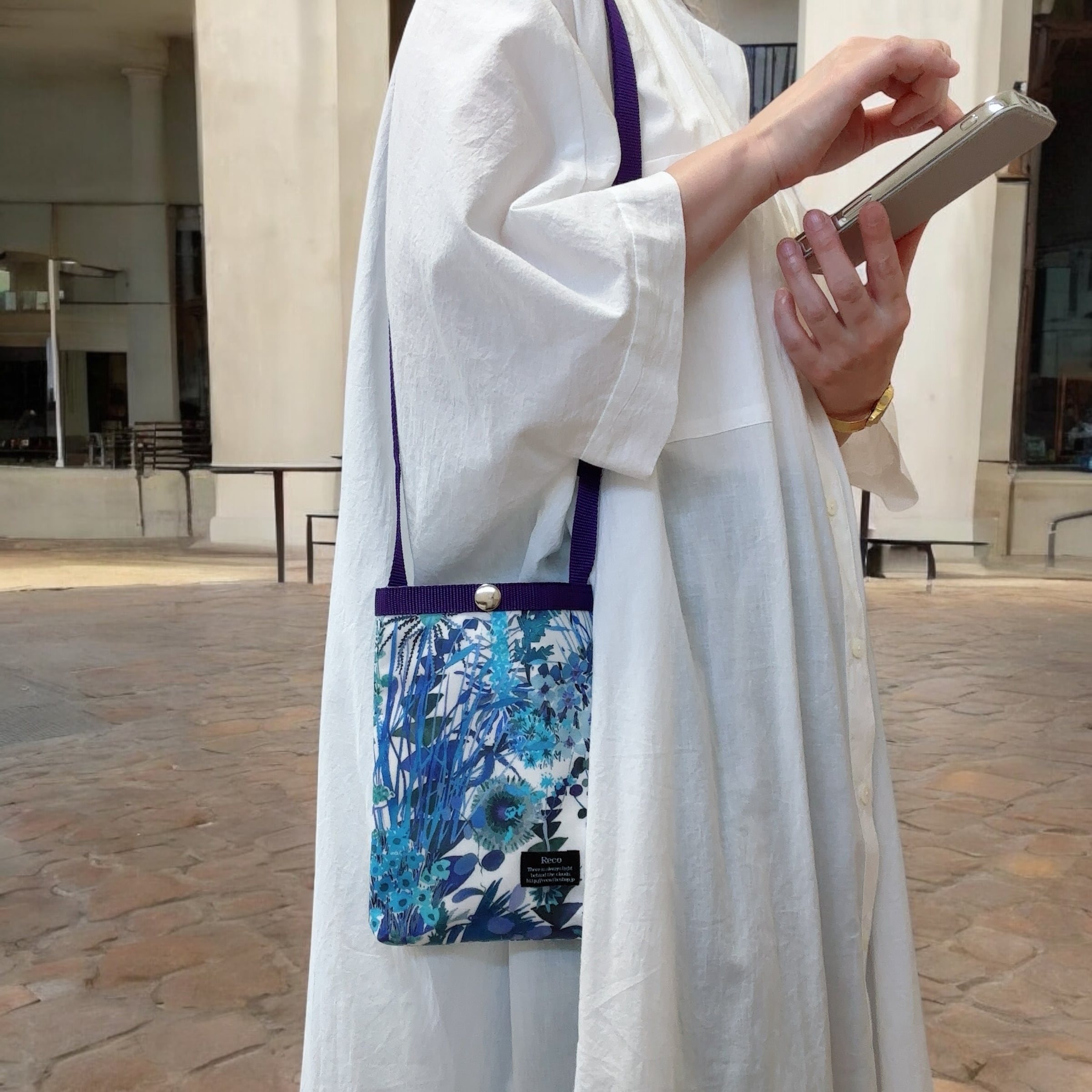 【定番柄】スマホショルダーS テープタイプ リバティプリント ラミネート生地 トレスコ ブルー