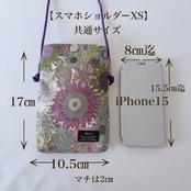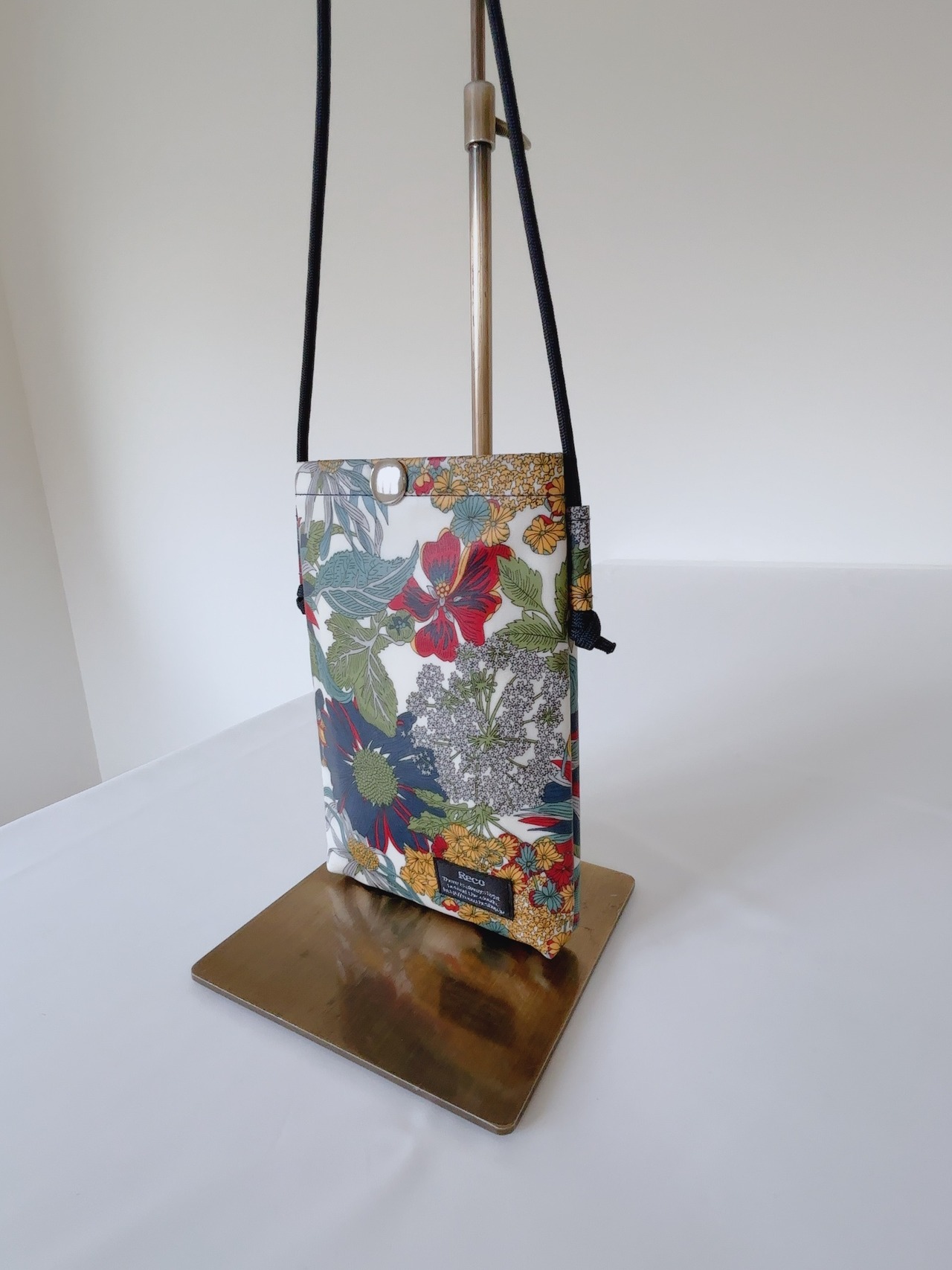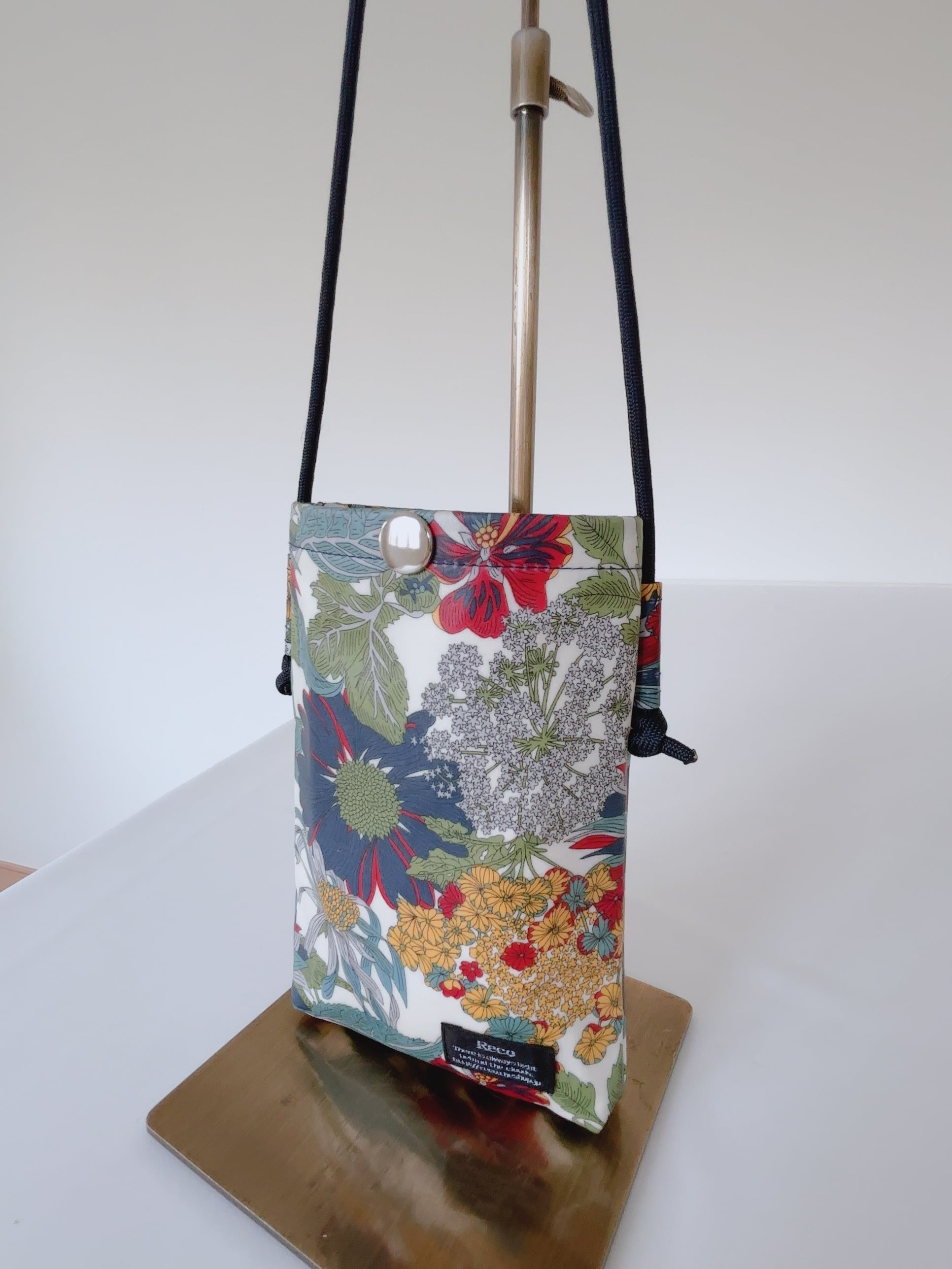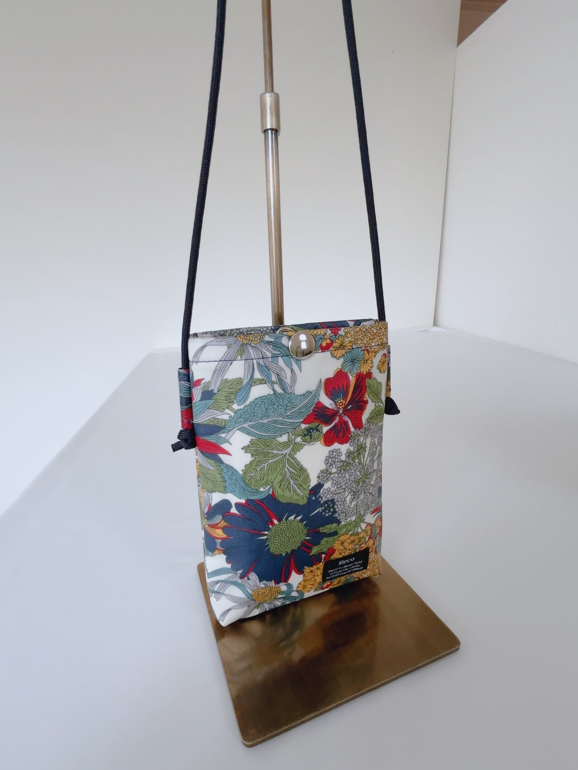 【SALE】スマホショルダーXS ひもタイプ リバティプリント ラミネート生地 アンジェリカガーラ ネイビー