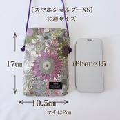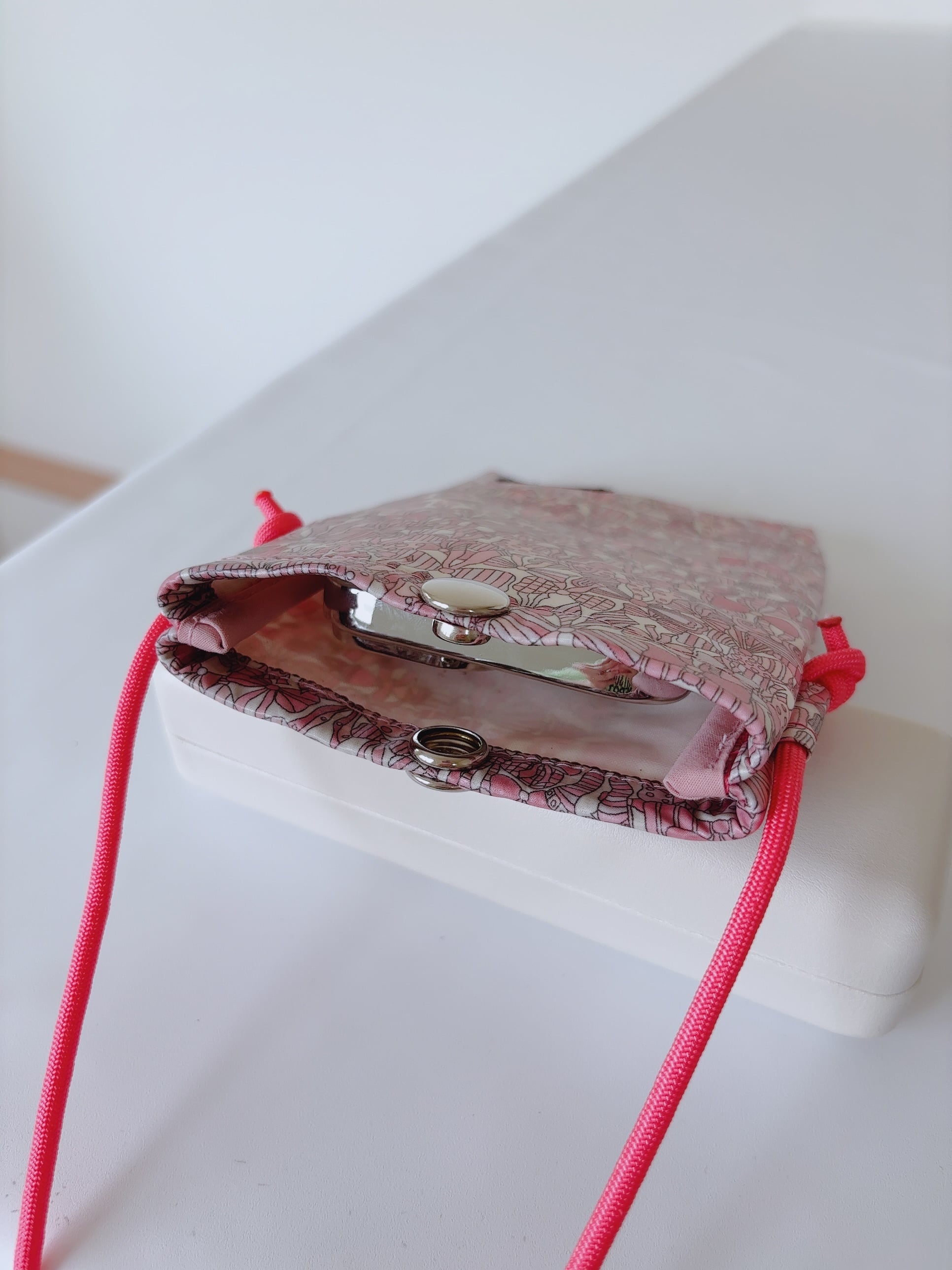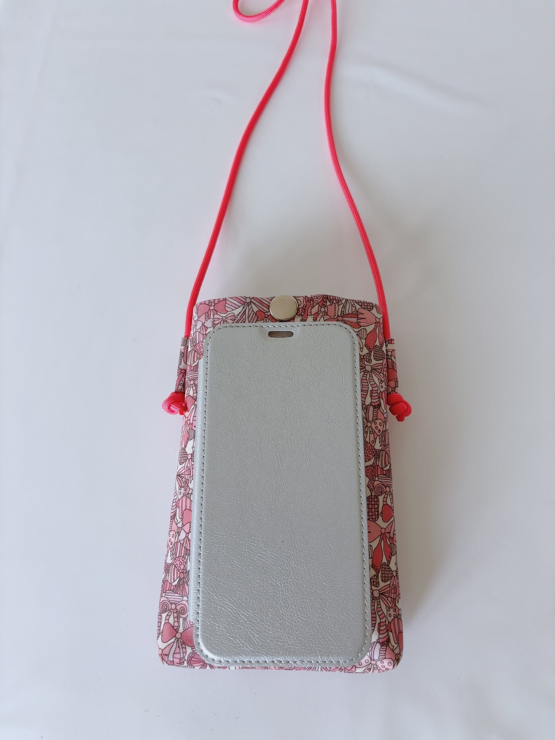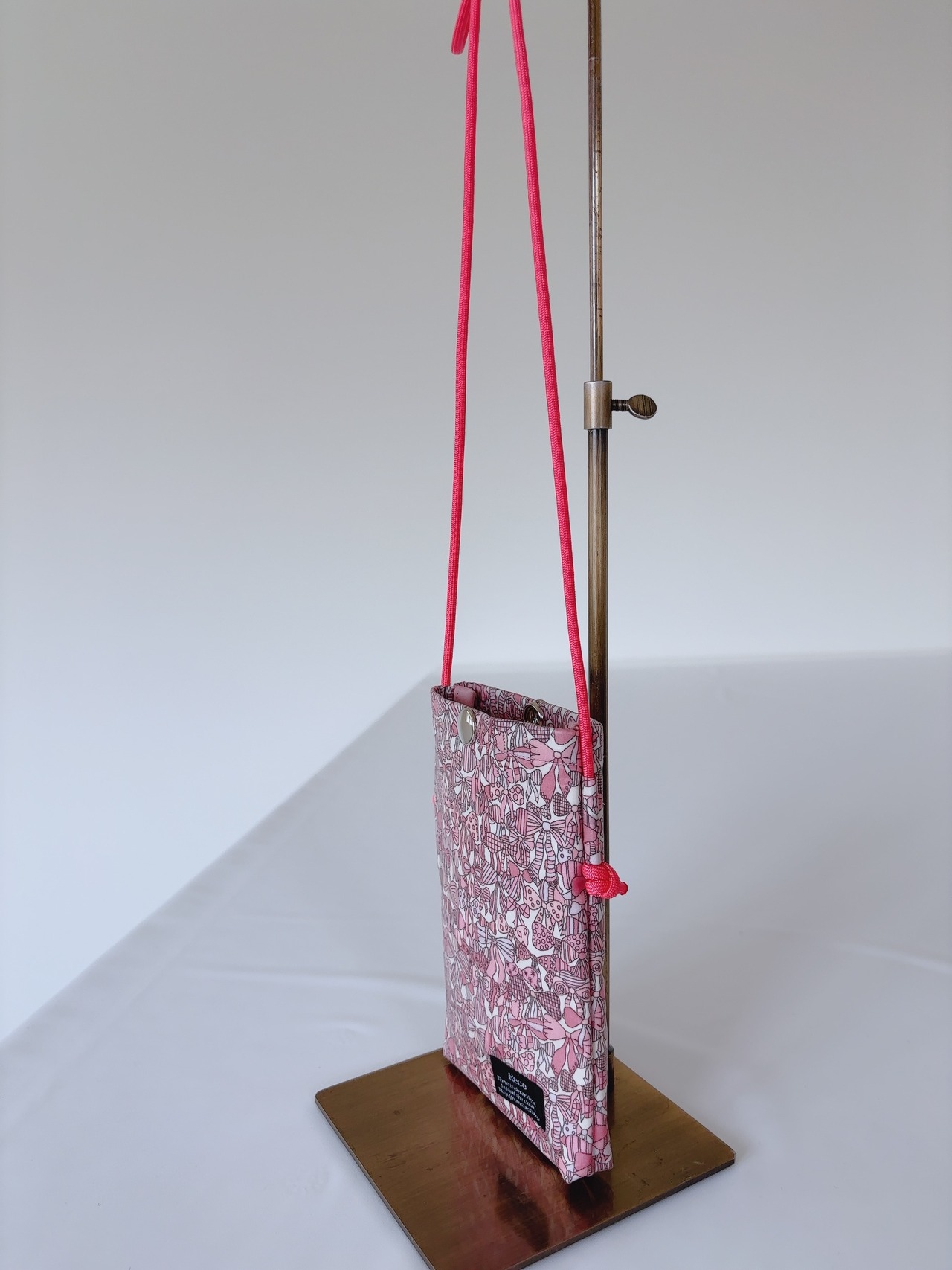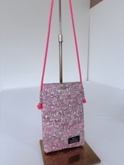 【SALE】スマホショルダーXS ひもタイプ リバティプリント ラミネート生地 ジェニーズリボンズ ピンク
