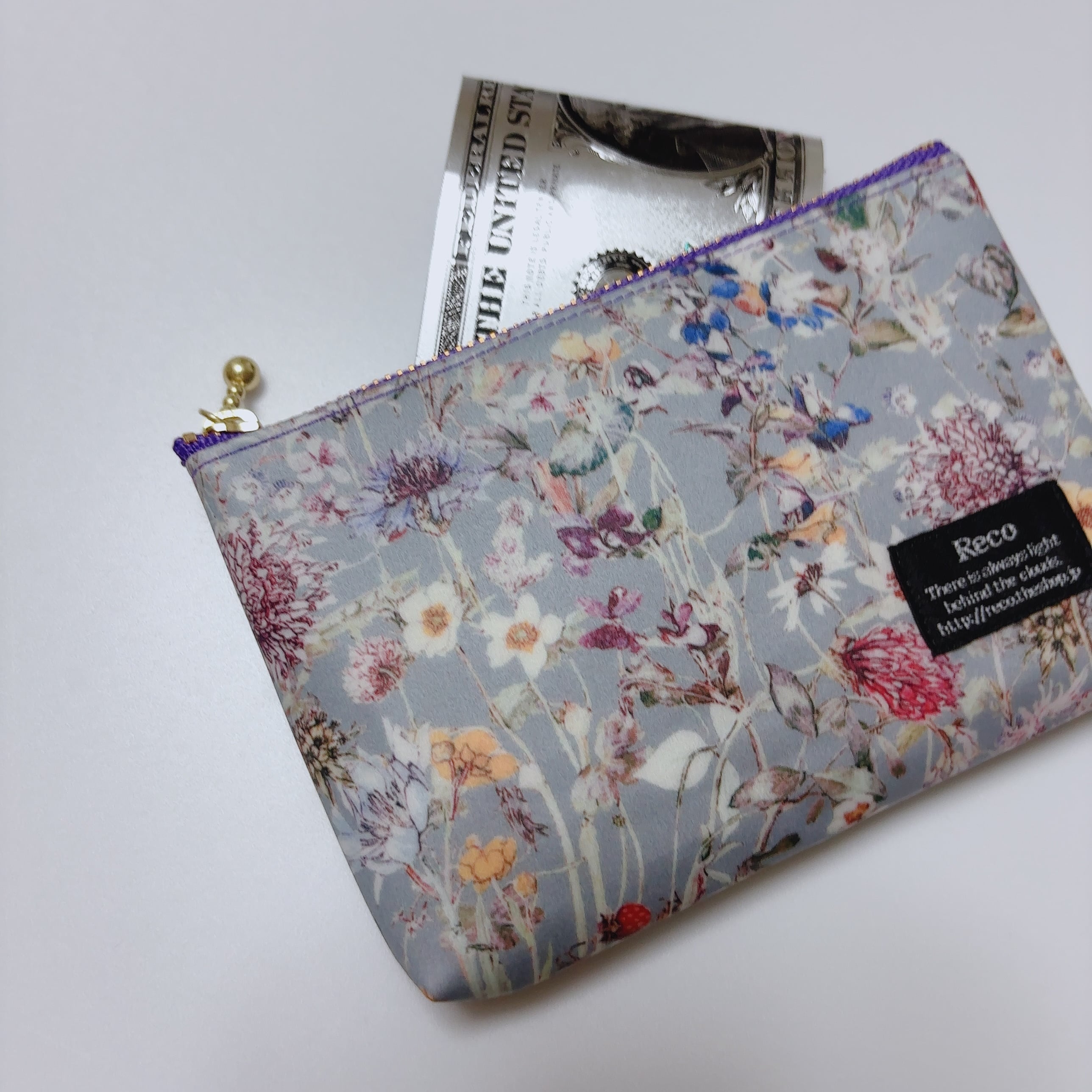【定番柄】ミニ財布 リバティ ラミネート ワイルドフラワーズ グレー