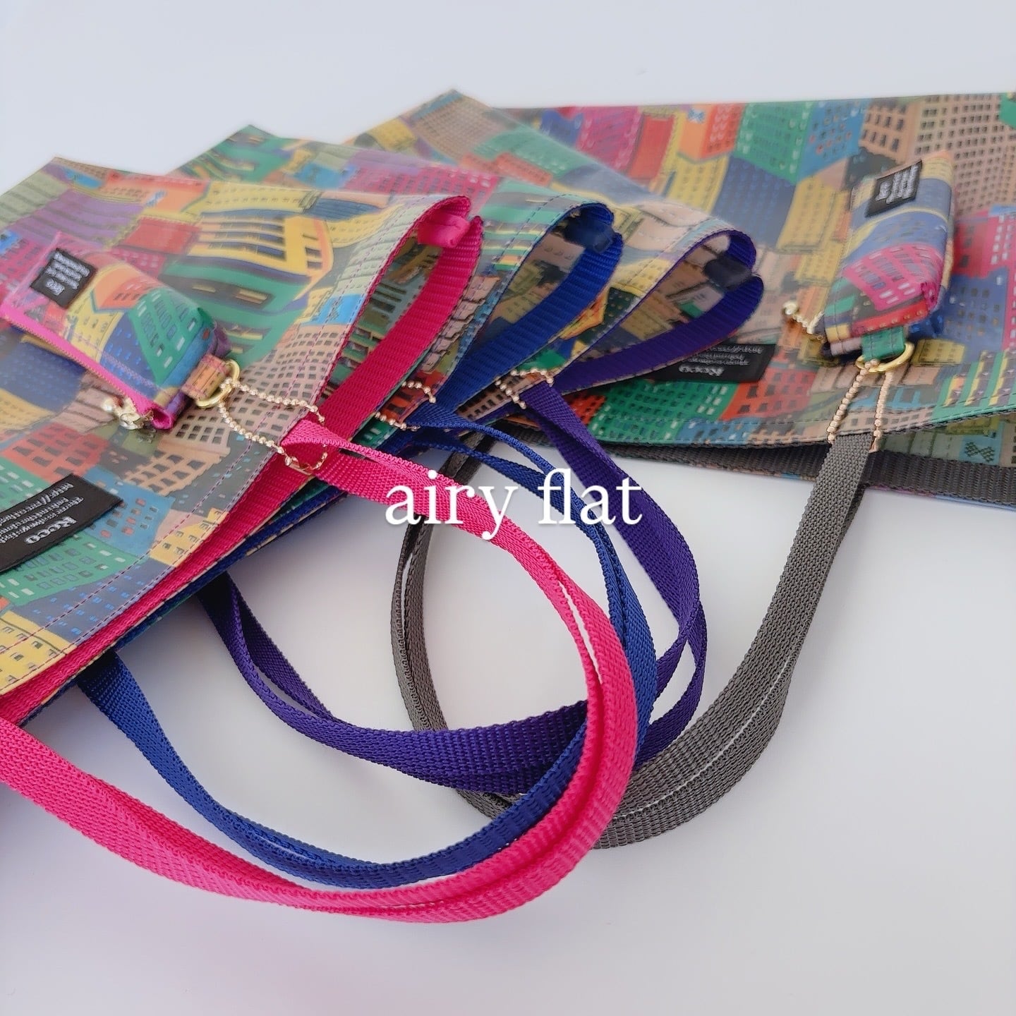 リバティプリントのラミネート生地を贅沢に使用し、一枚仕立てで仕上げた軽やかなフラットトートです。