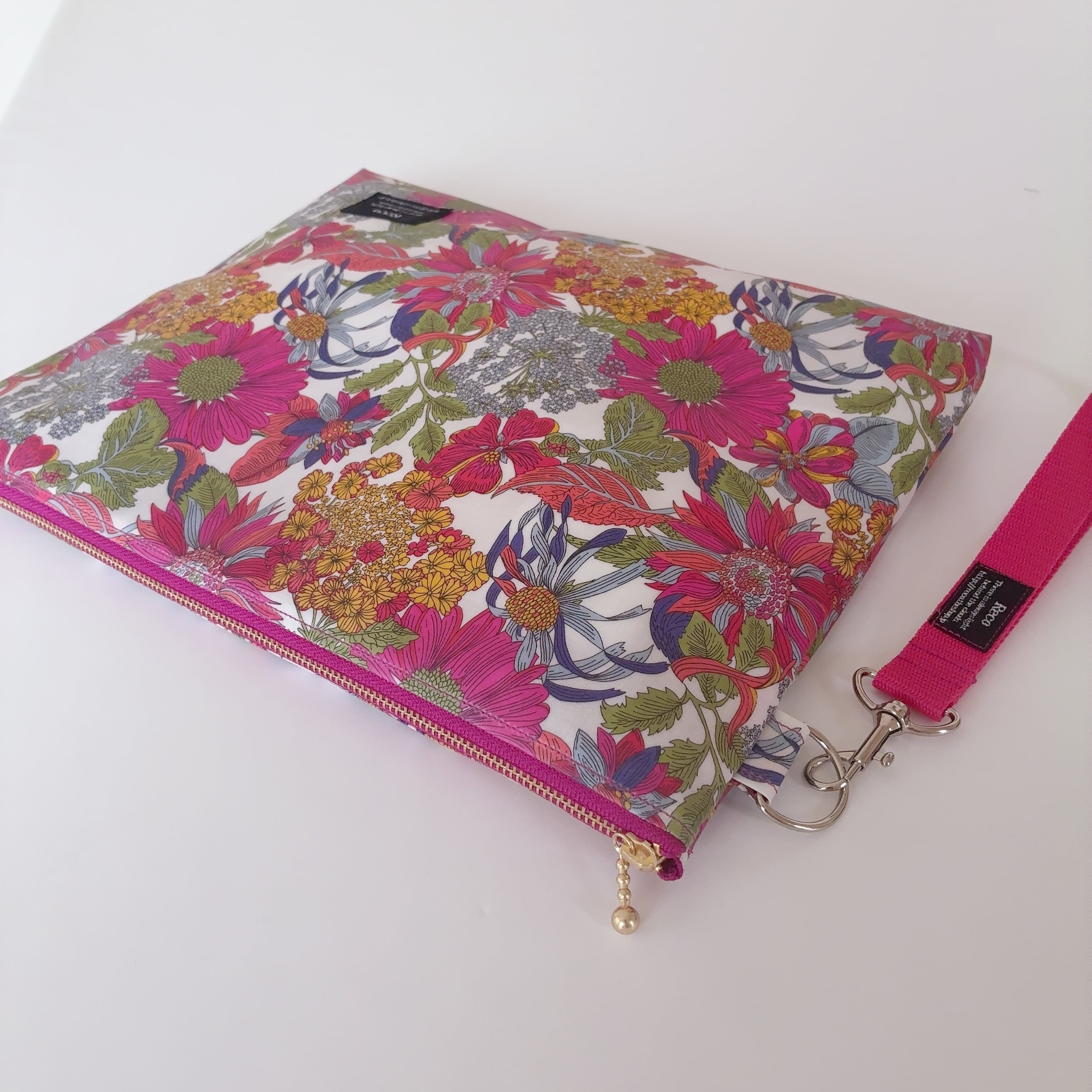 リバティのラミネート生地は高価で生産数が少ない希少な素材です。 その美しさと使いやすさを活かし、毎日頑張る女性の方々にお使いいただけるバッグを丁寧に制作しています。
