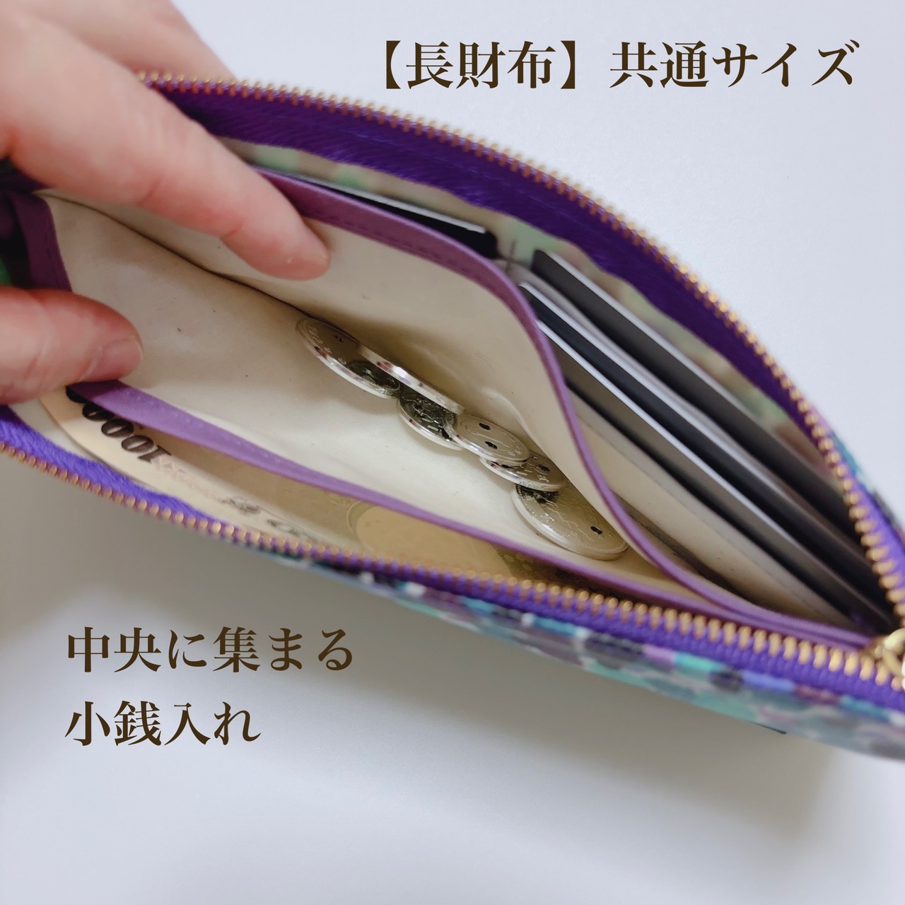 小銭入れは、中央に集まるので、端が取れないストレスがありません!