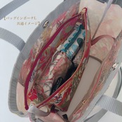 リバティのラミネート生地は高価で生産数が少ない希少な素材です。 その美しさと使いやすさを活かし、毎日頑張る女性の方々にお使いいただけるバッグを丁寧に制作しています。