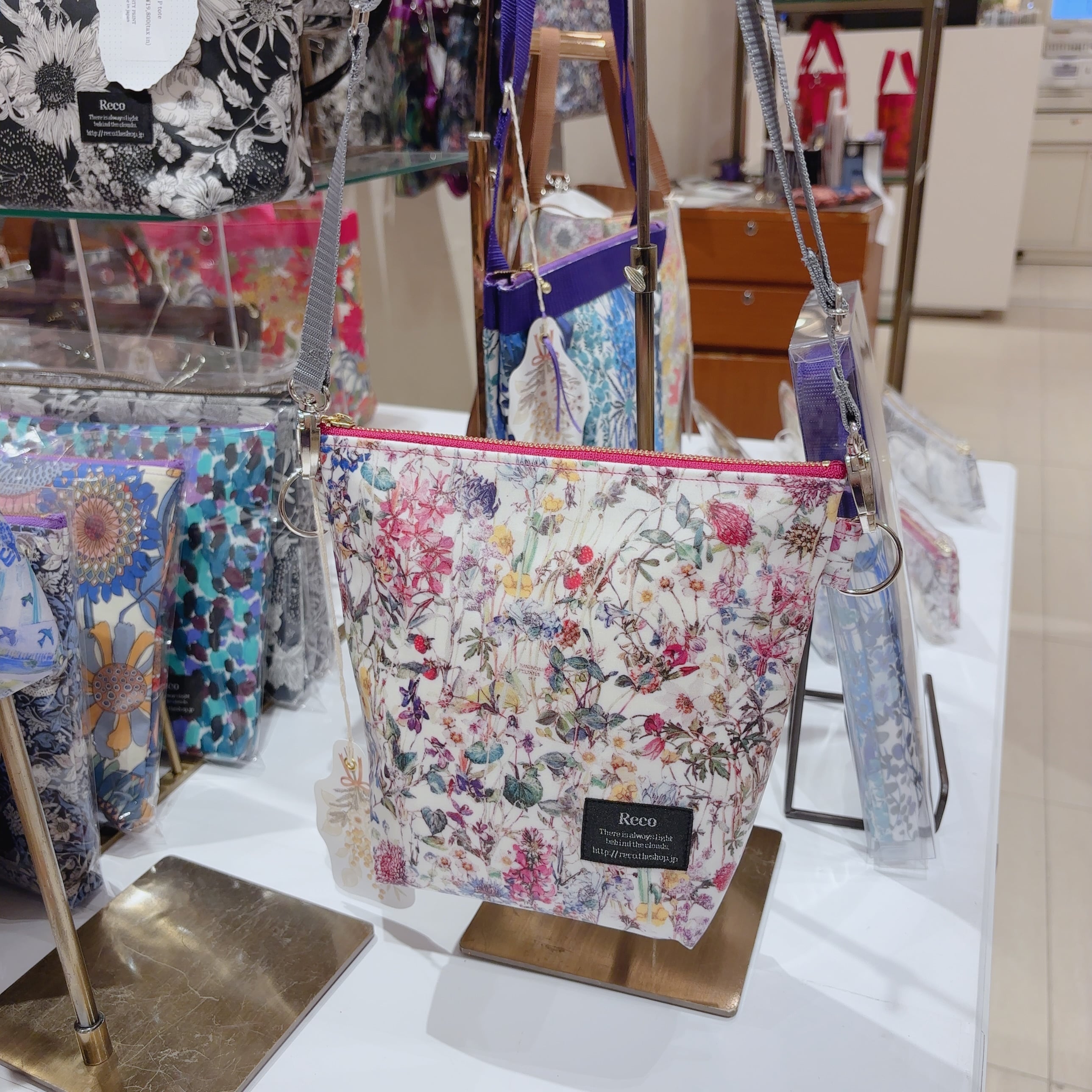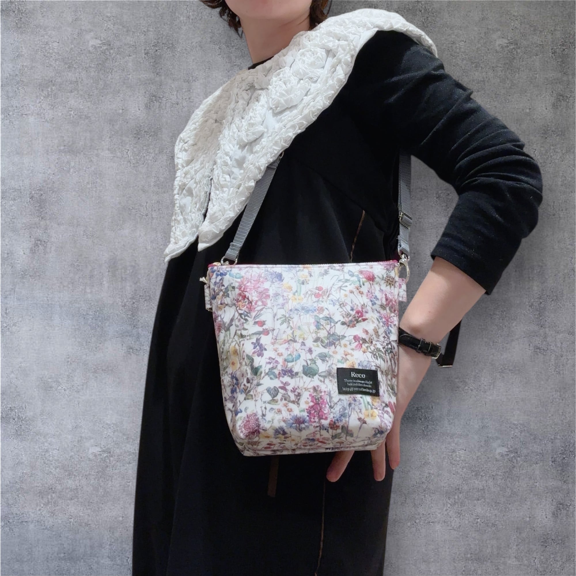 雨の日は、もちろん、汚れても、さっと拭き取れ、全面アルコール除菌もしていただける実用的で扱いやすいリバティプリントのラミネート生地でお作りした、ショルダーバッグです