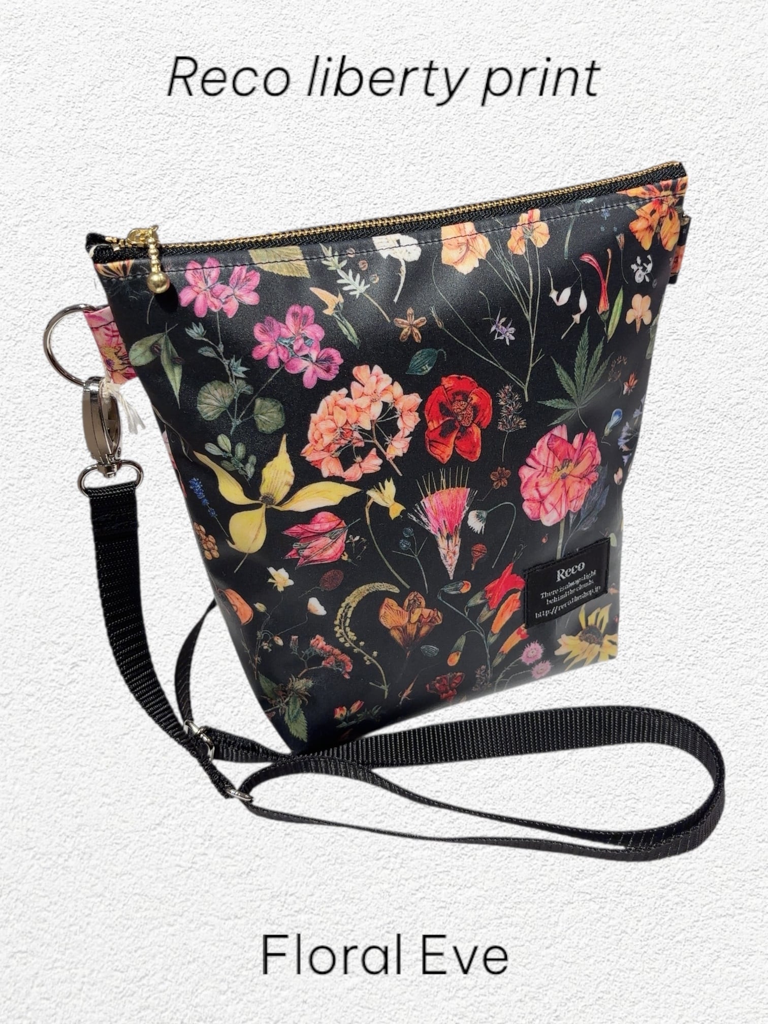 雨の日は、もちろん、汚れても、さっと拭き取れ、全面アルコール除菌もしていただける実用的で扱いやすいリバティプリントのラミネート生地でお作りした、ショルダーバッグです