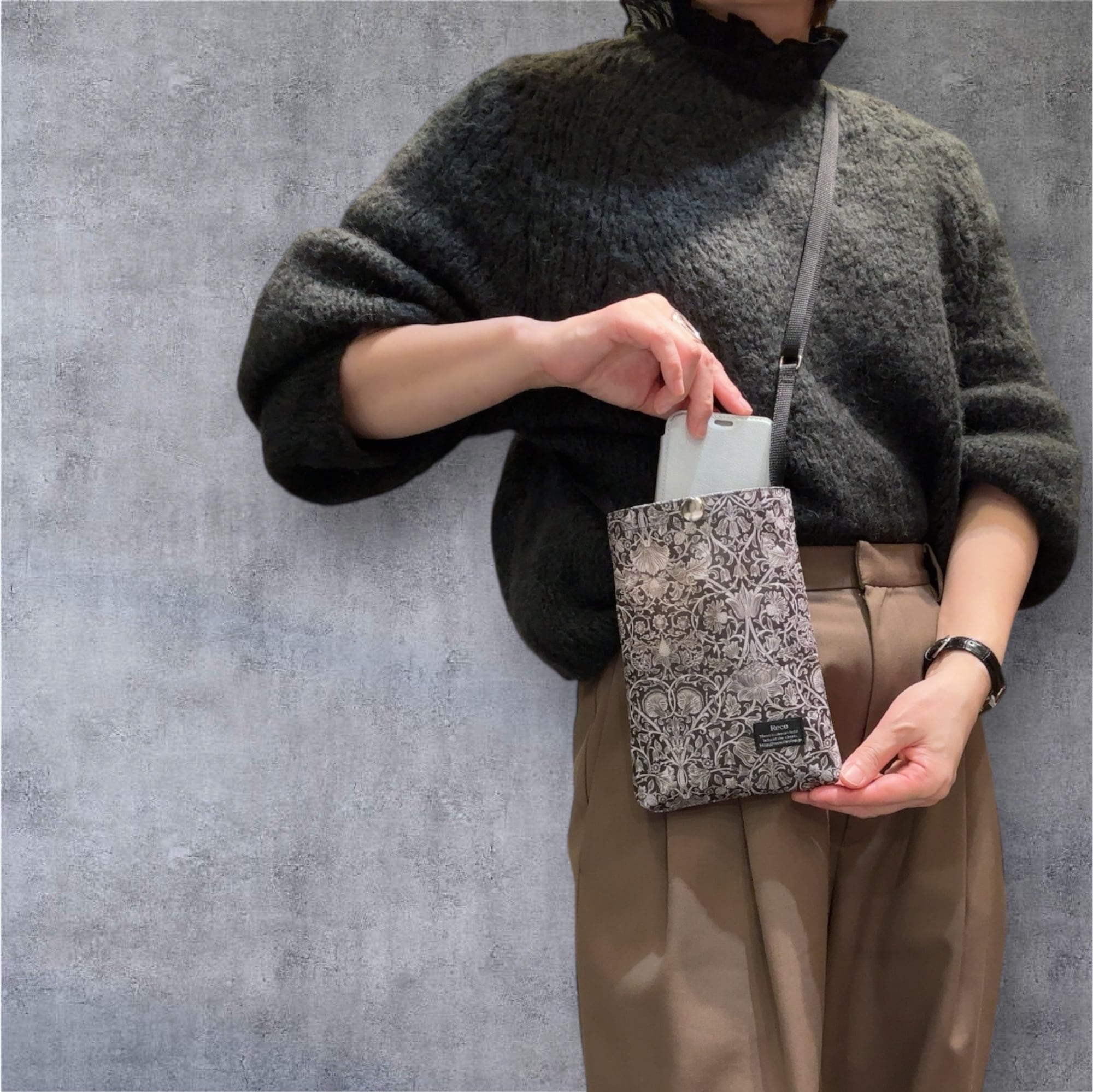 探さなくていいように、母のために作ったスマホショルダーです。