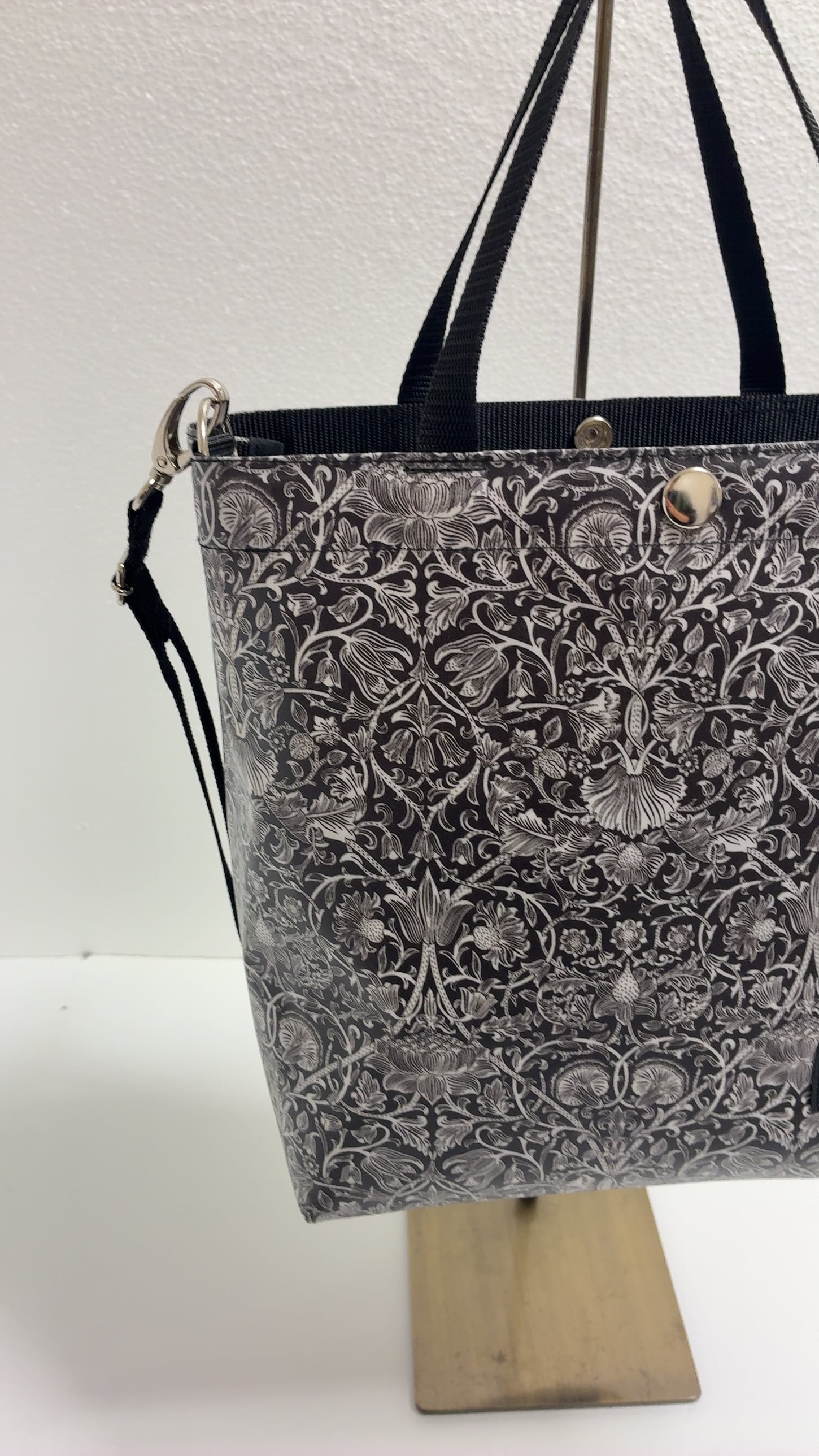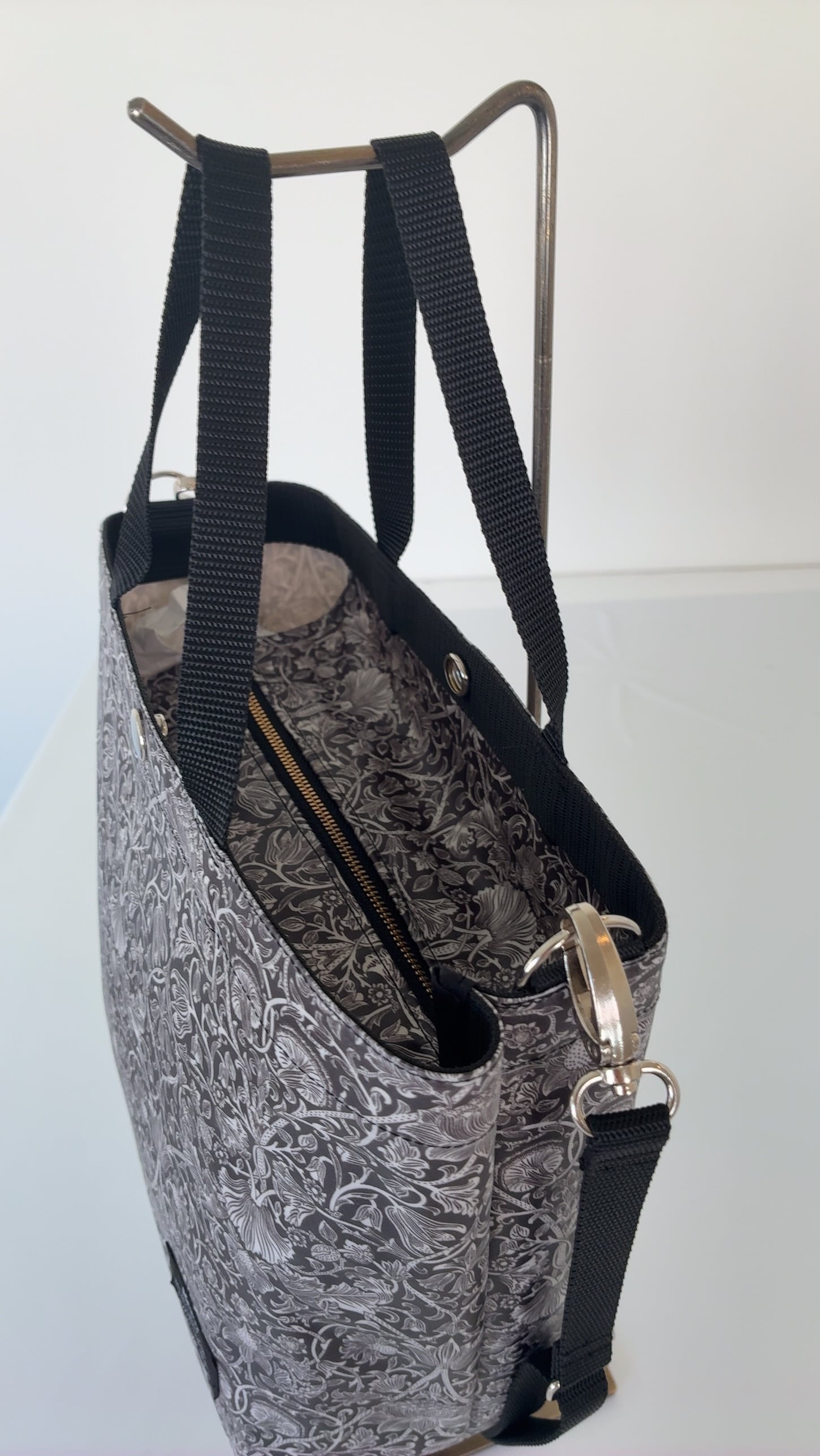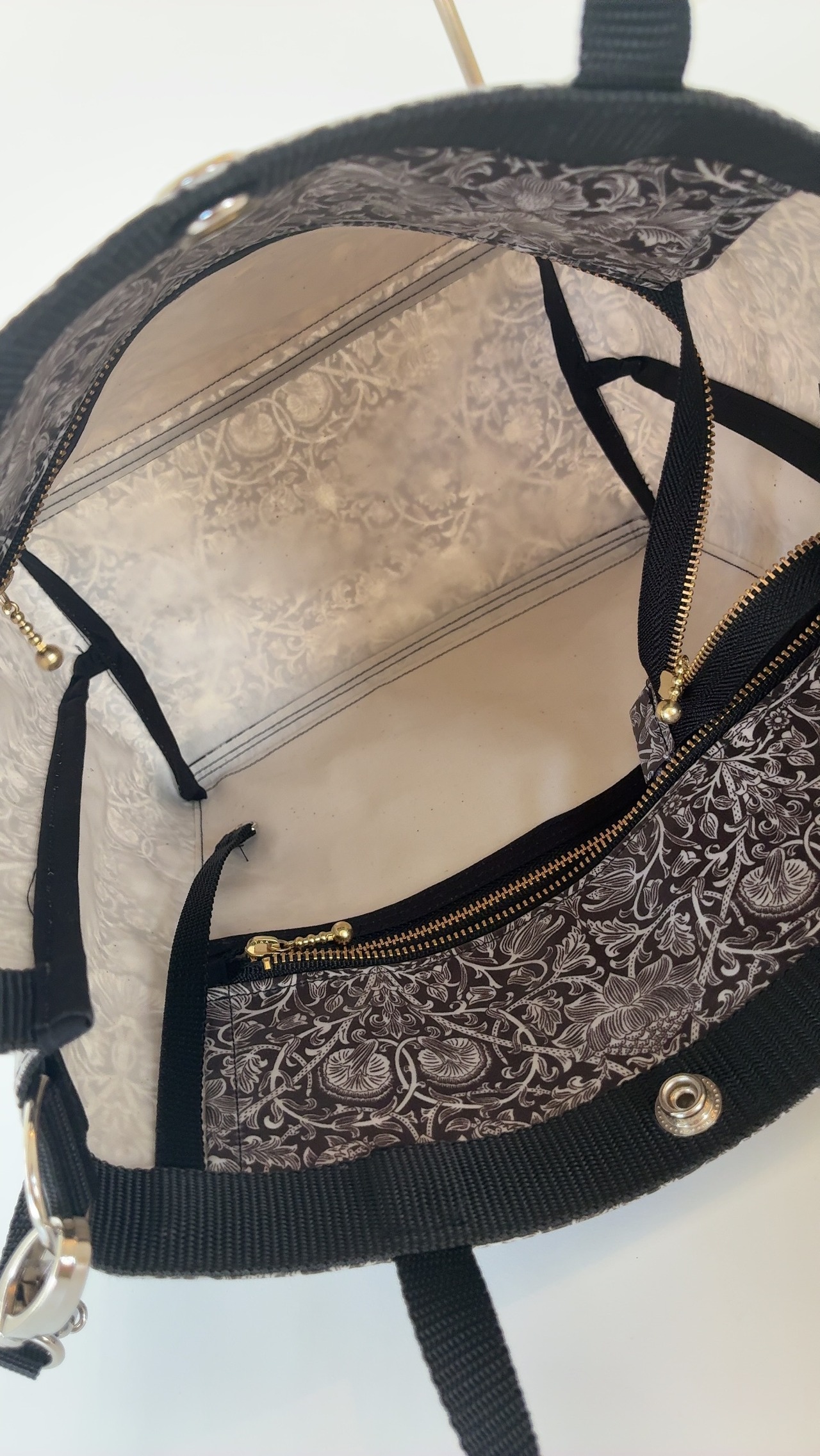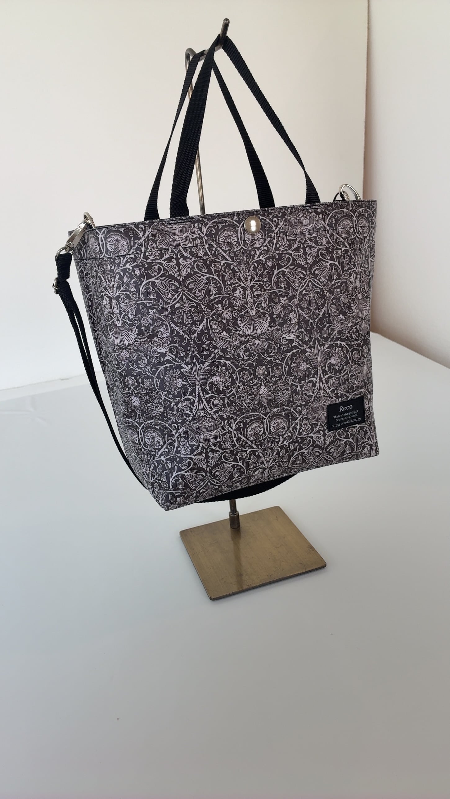 リバティのラミネート生地は高価で生産数が少ない希少な素材です。 その美しさと使いやすさを活かし、毎日頑張る女性の方々にお使いいただけるバッグを丁寧に制作しています。