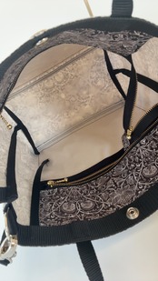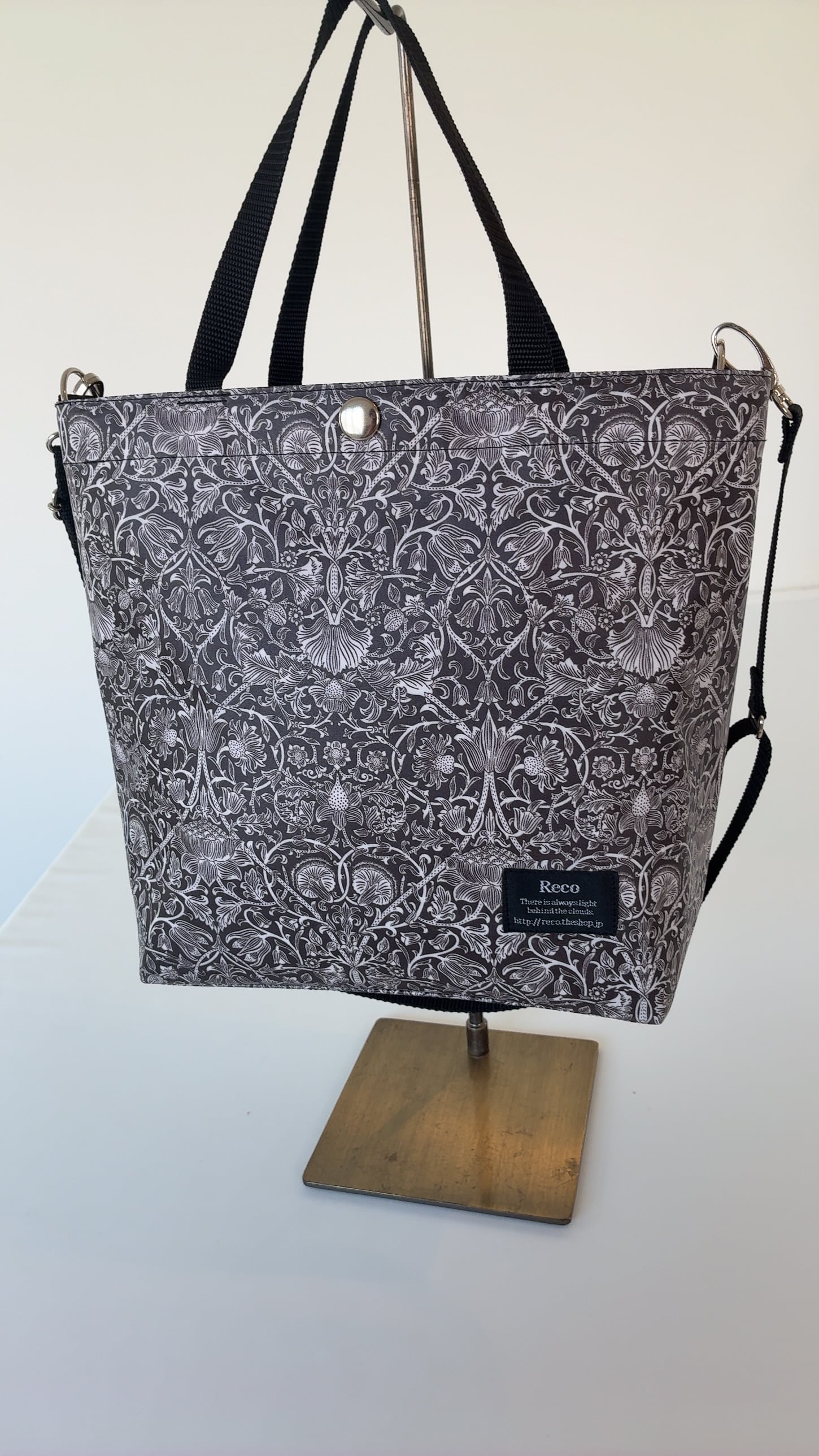 蓋は、生地を多めに取っていますので、スマホやショール、ペットボトルのちょい置きもできます。