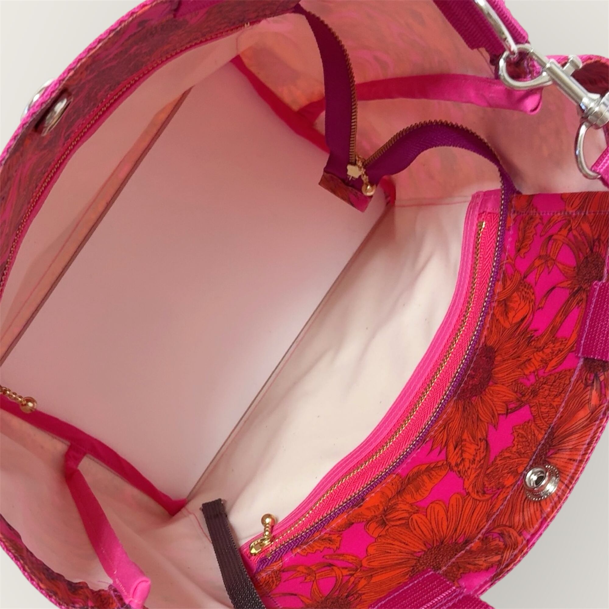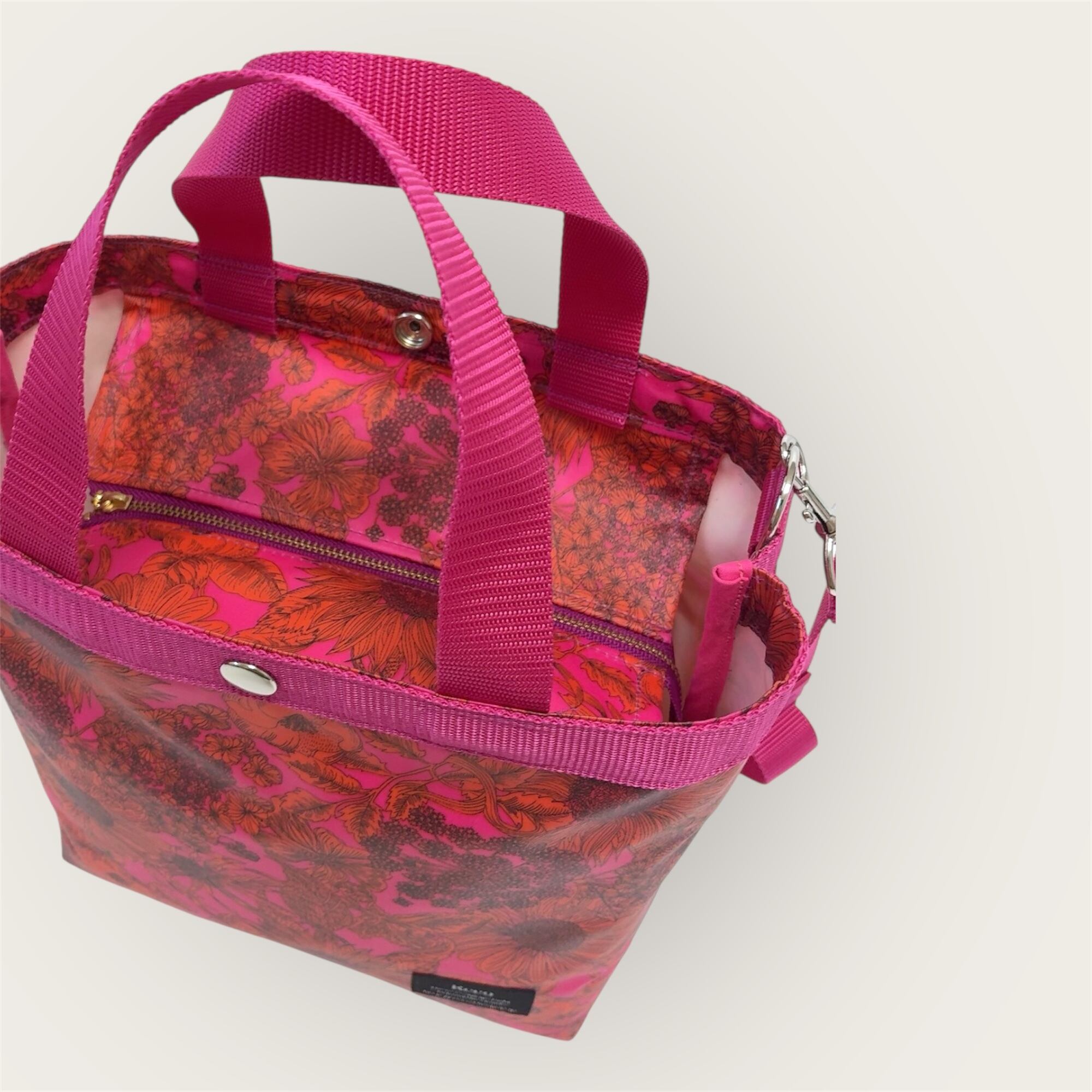 リバティのラミネート生地は高価で生産数が少ない希少な素材です。 その美しさと使いやすさを活かし、毎日頑張る女性の方々にお使いいただけるバッグを丁寧に制作しています。
