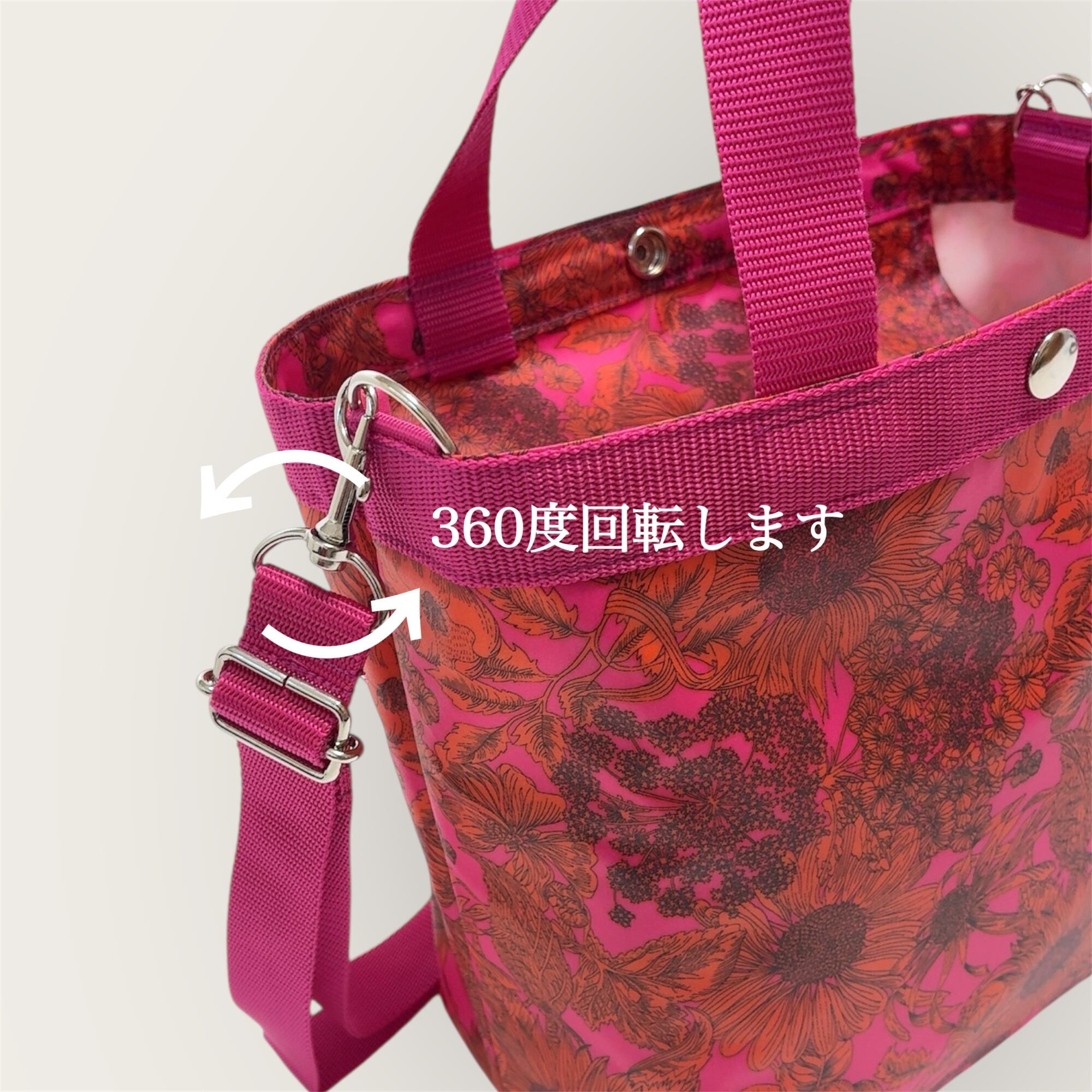 蓋は、生地を多めに取っていますので、スマホやショール、ペットボトルのちょい置きもできます。