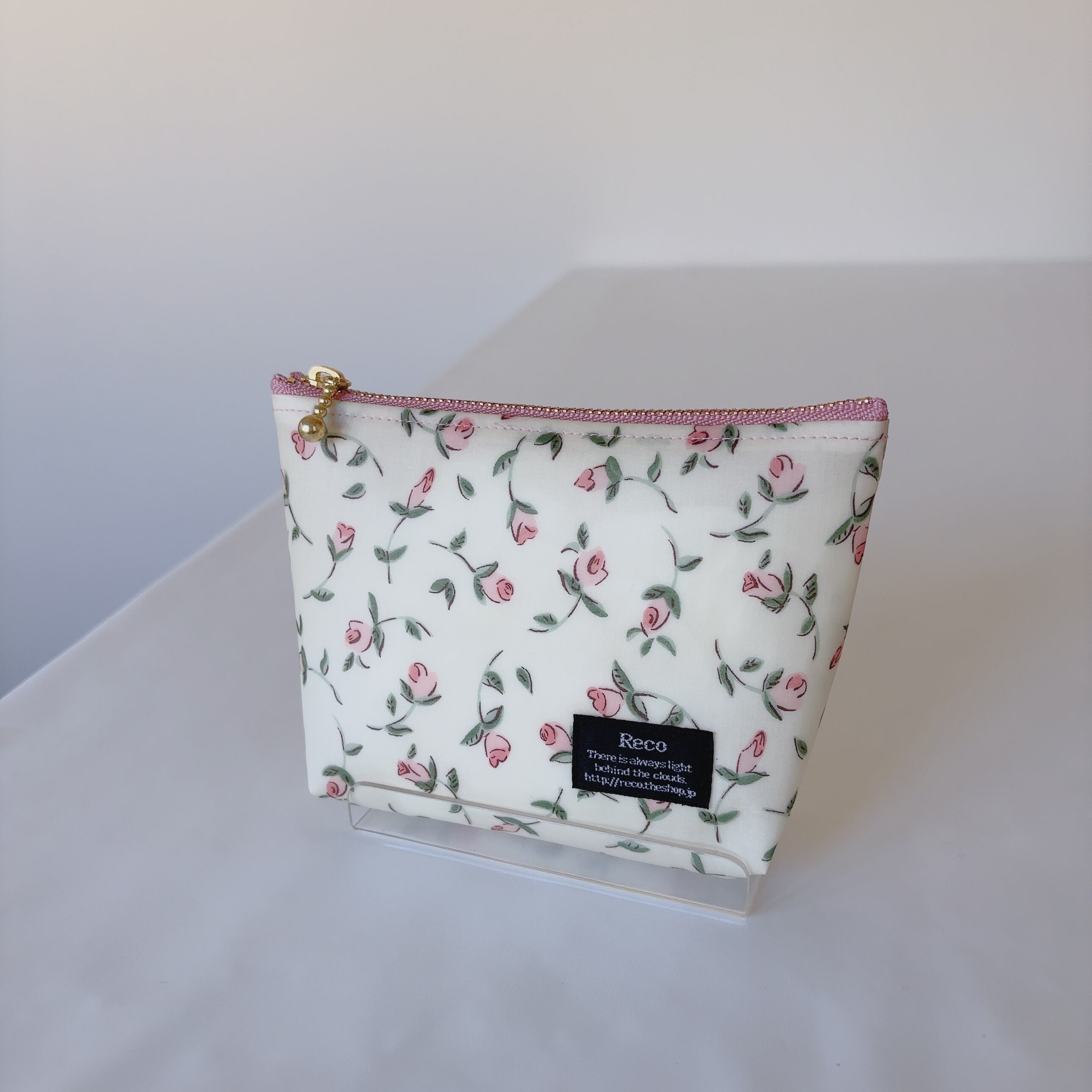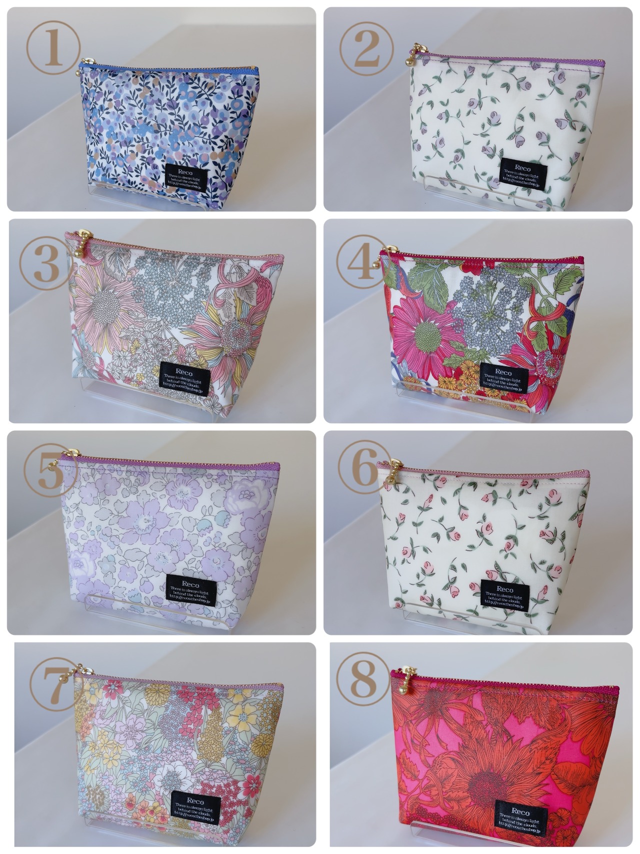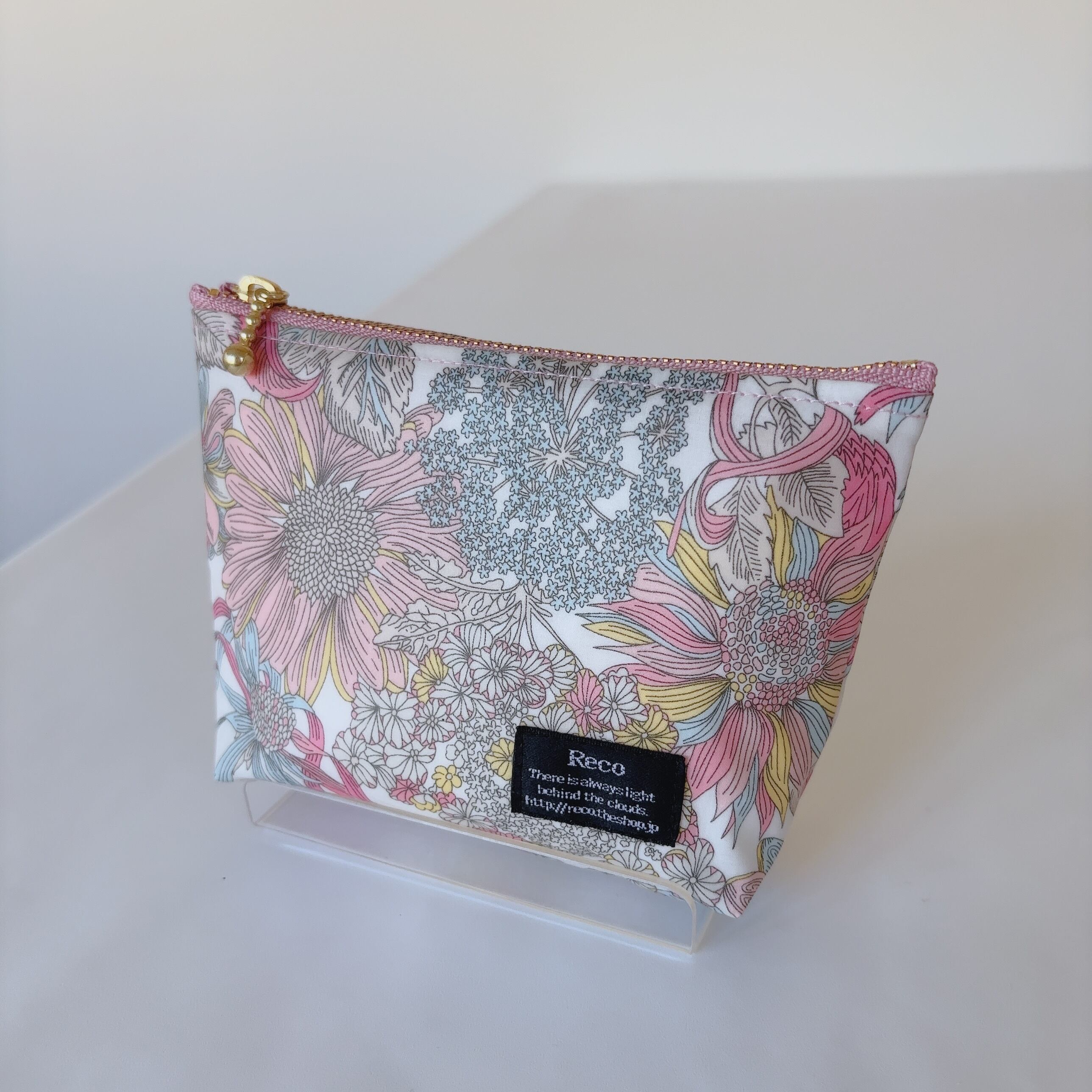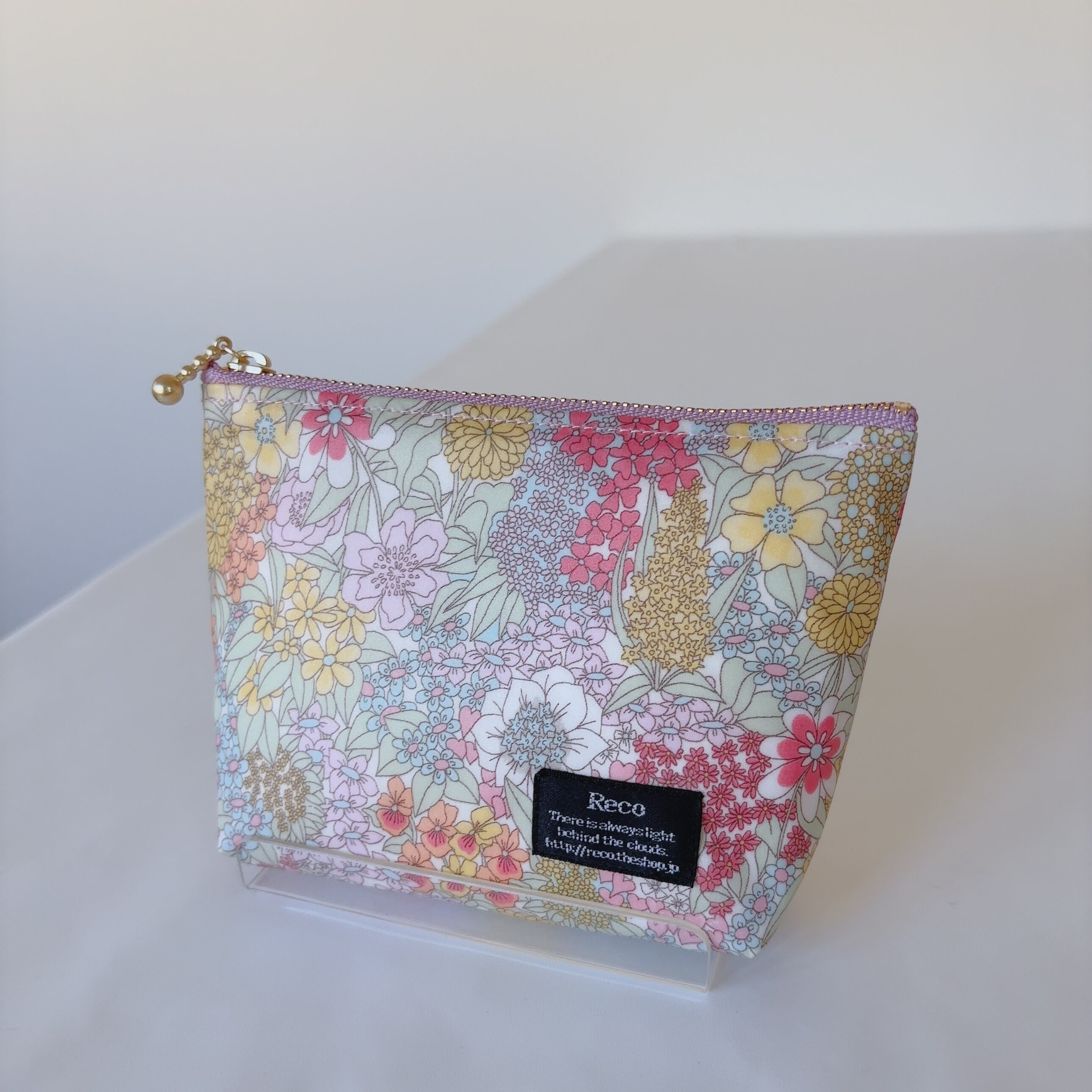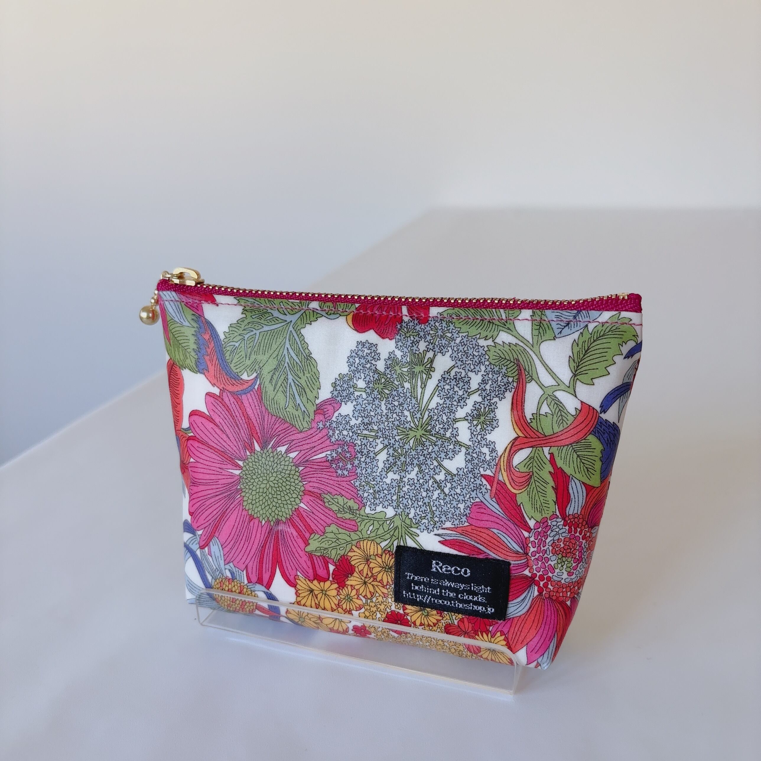 可愛らしいリバティプリントのデザインが目を引くポーチは、使うたびにテンションを高めてくれるはず!
