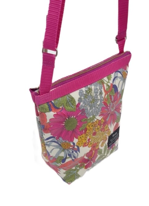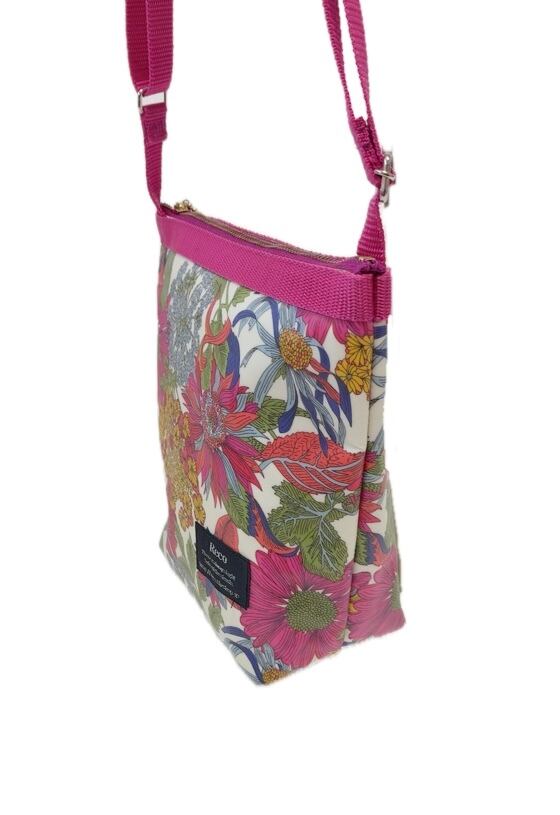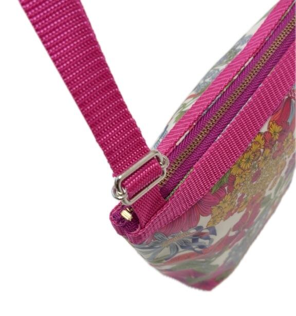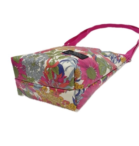 雨の日は、もちろん、汚れても、さっと拭き取れ、全面アルコール除菌もしていただける実用的で扱いやすいリバティプリントのラミネート生地でお作りした、ショルダーバッグです