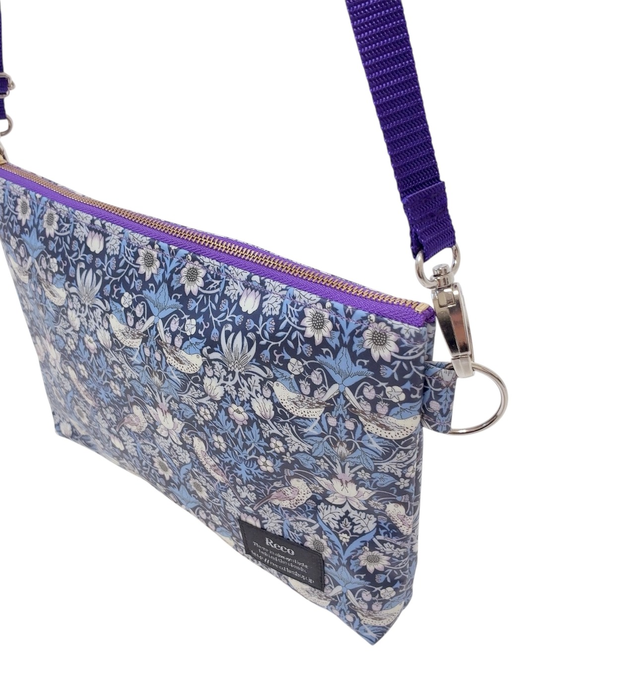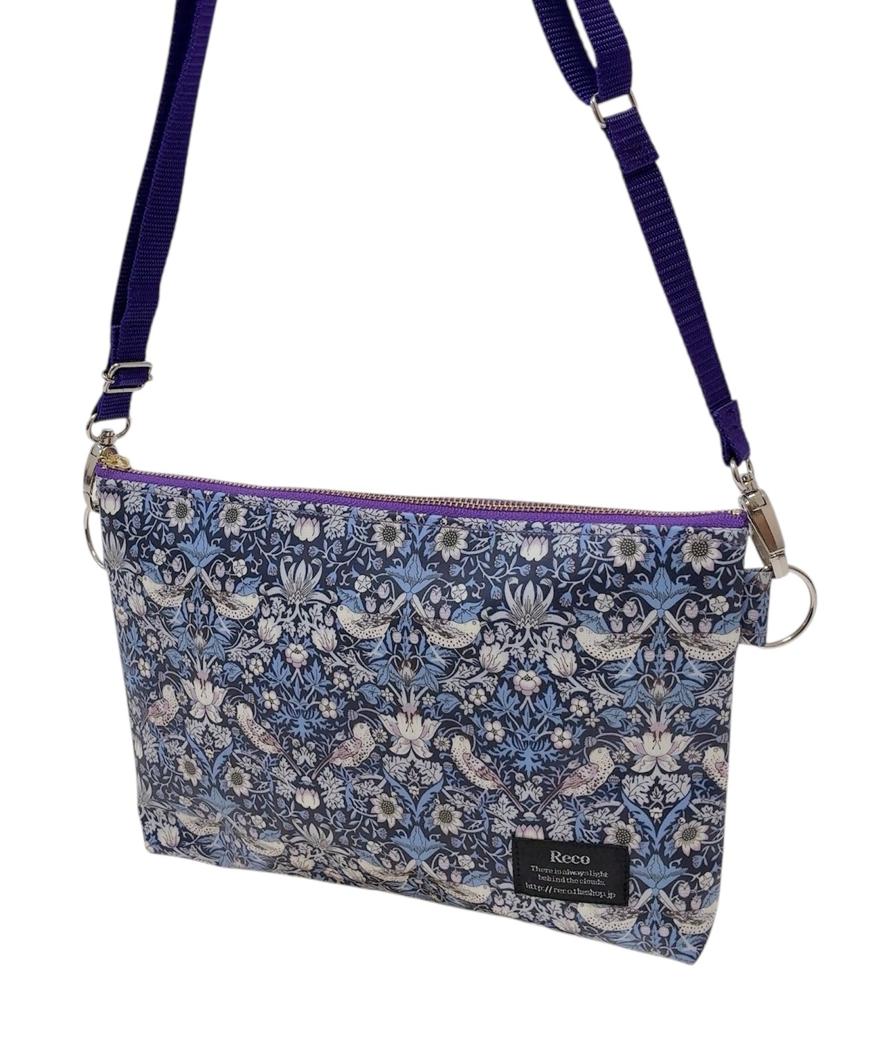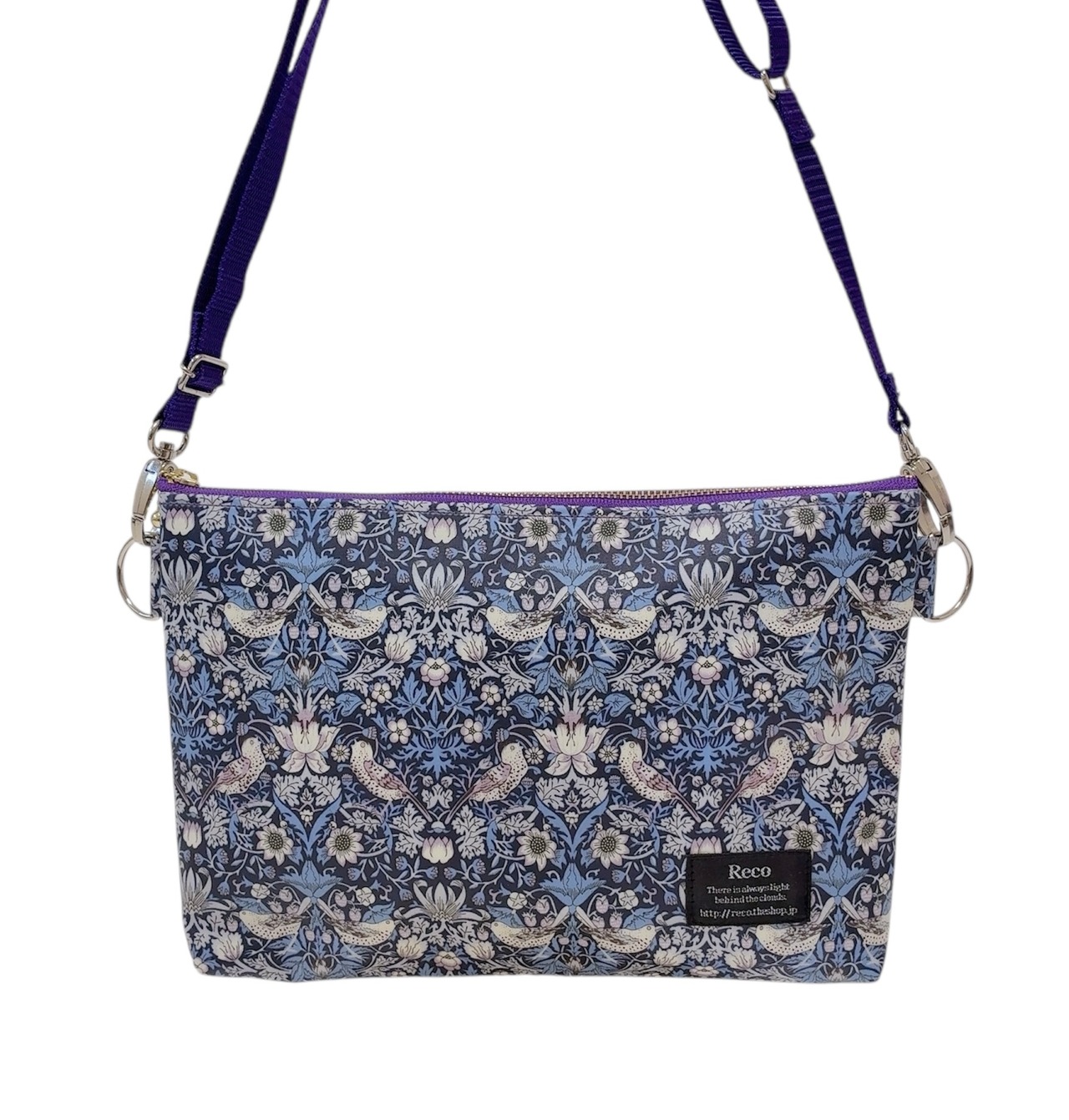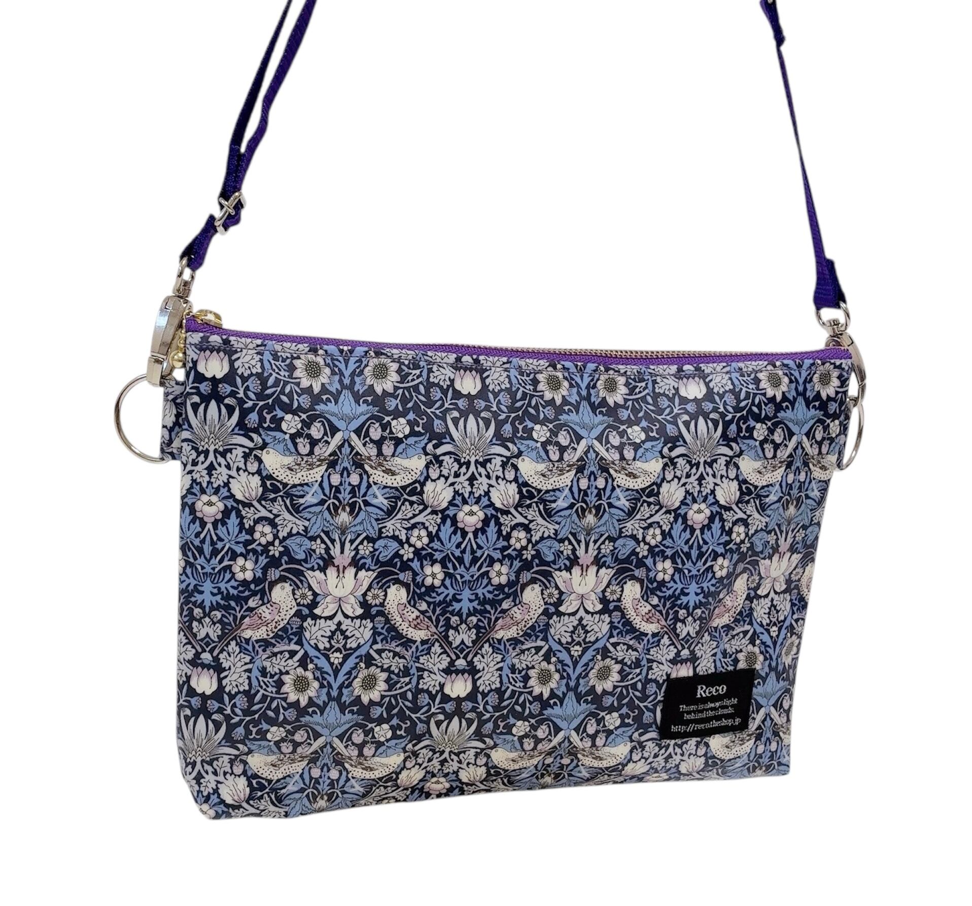 雨の日は、もちろん、汚れても、さっと拭き取れ、全面アルコール除菌もしていただける実用的で扱いやすいリバティプリントのラミネート生地でお作りした、ショルダーバッグです
