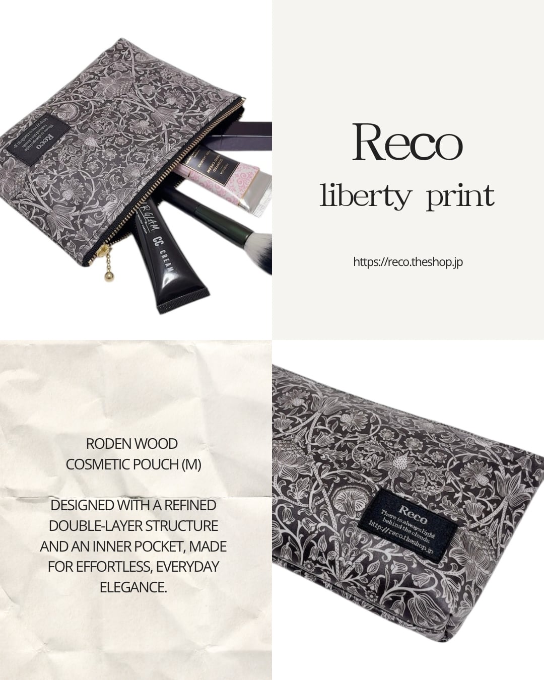 「Recoだけの特別な希少柄」 流通の少ない限定生地。 Recoが特別にラミネート加工した生地や、リバティでは珍しい柄など、希少価値の高い特別な一枚です。