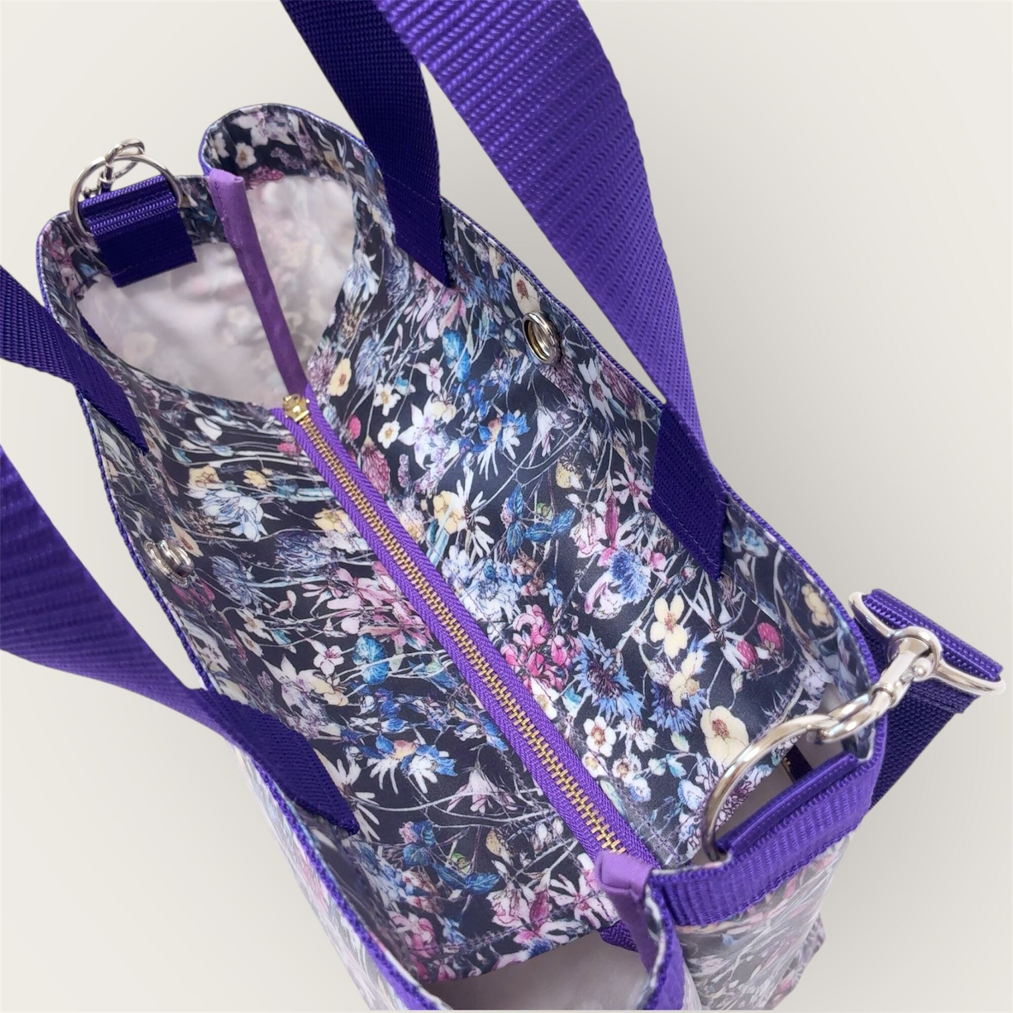 リバティのラミネート生地は高価で生産数が少ない希少な素材です。 その美しさと使いやすさを活かし、毎日頑張る女性の方々にお使いいただけるバッグを丁寧に制作しています。