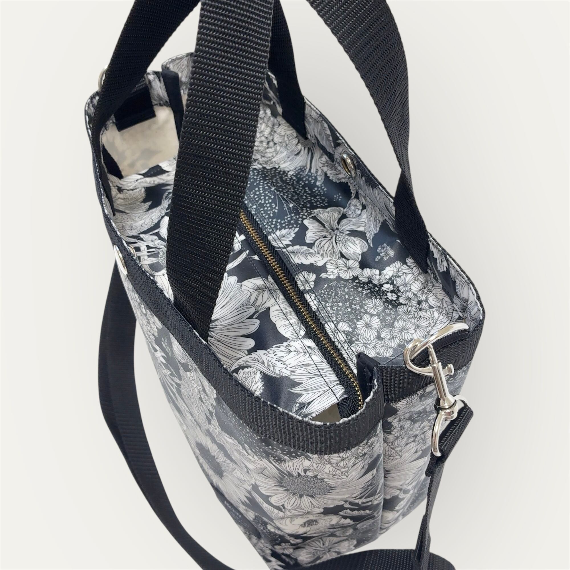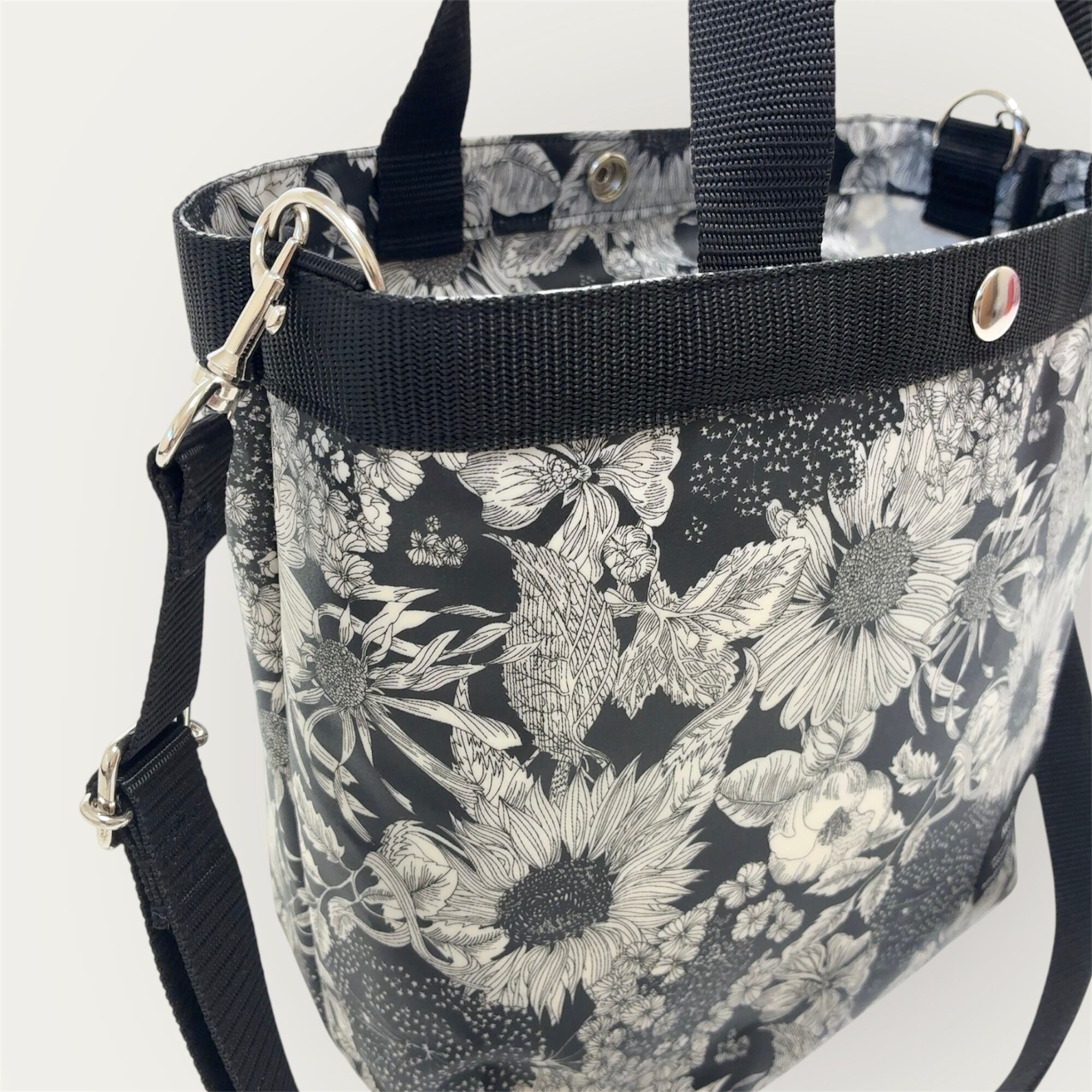 【普段使いに】Sトートバッグ (リバティ・ラミネート・スウィムダンクレア・ブラック)