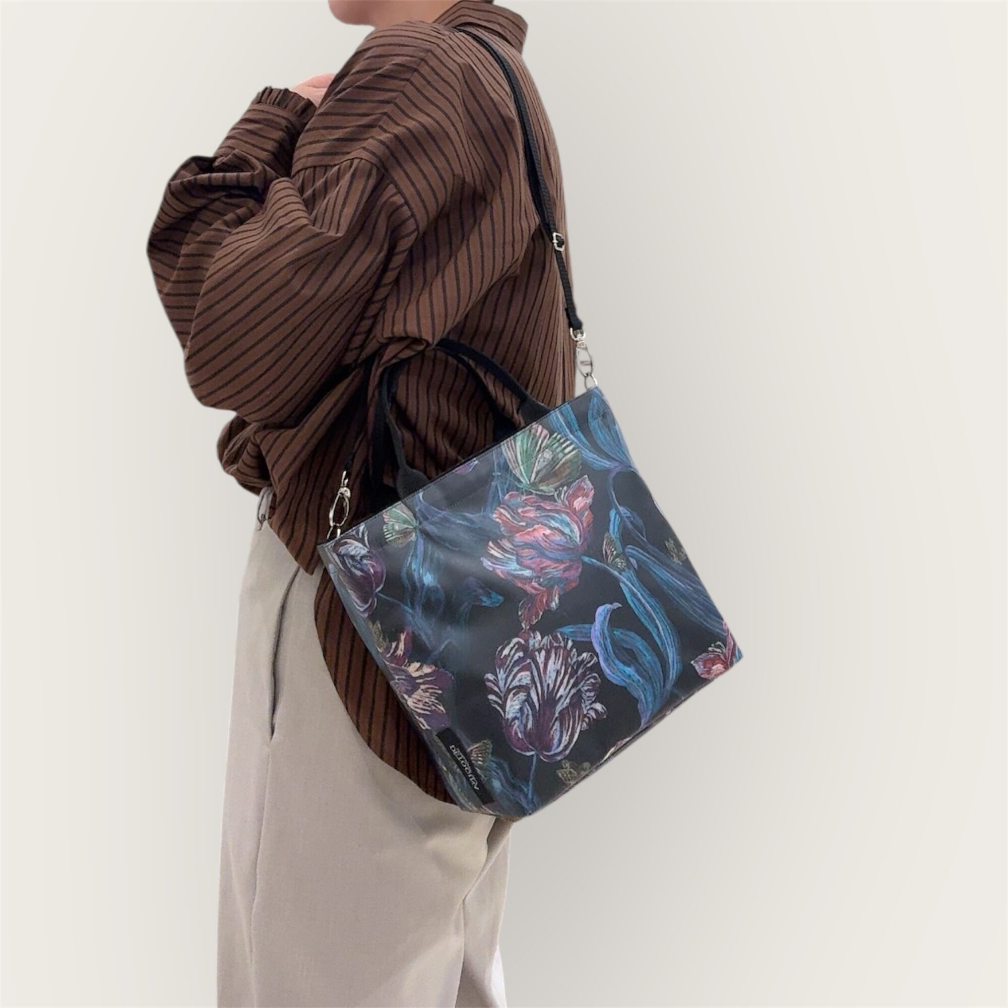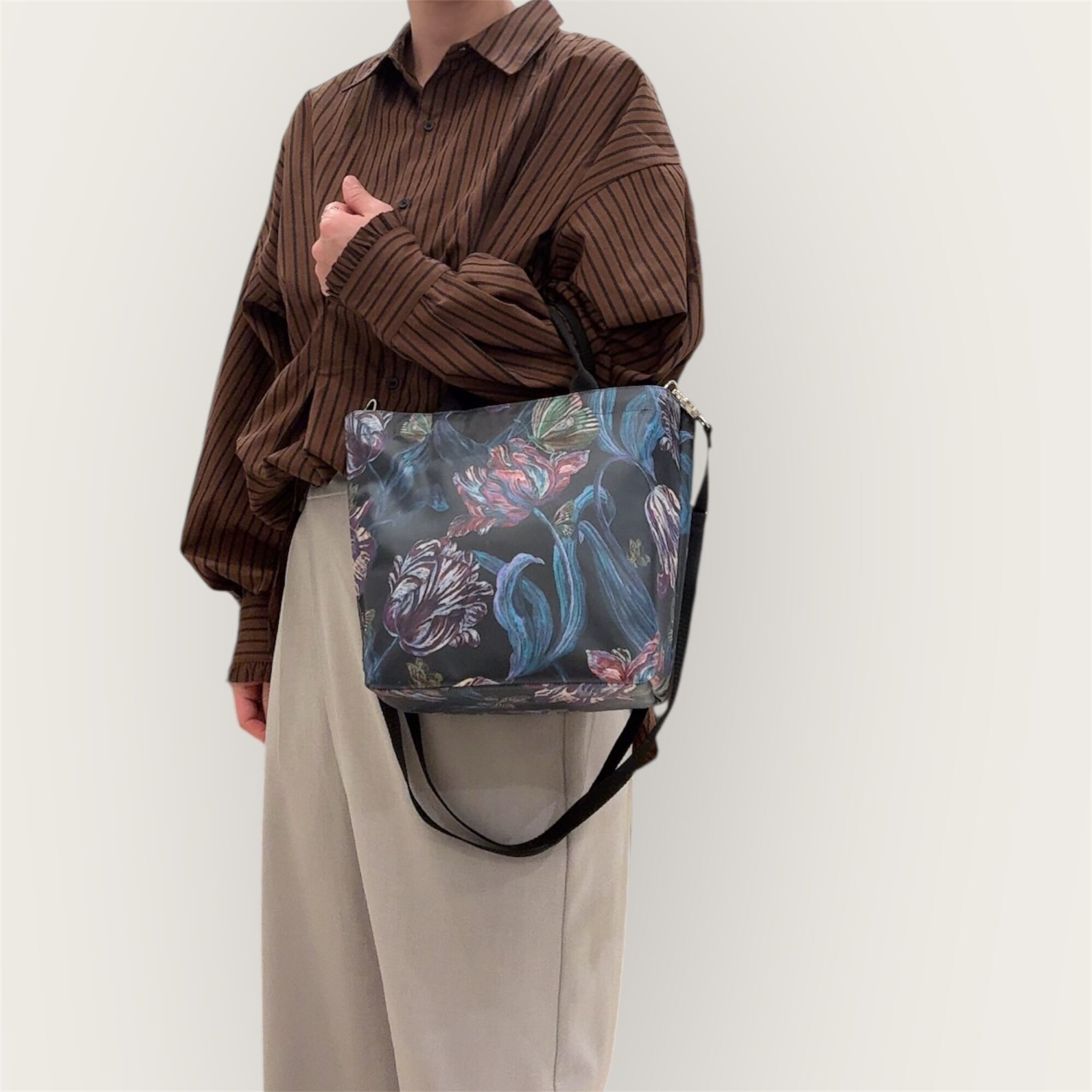 リバティのラミネート生地は高価で生産数が少ない希少な素材です。 その美しさと使いやすさを活かし、毎日頑張る女性の方々にお使いいただけるバッグを丁寧に制作しています。