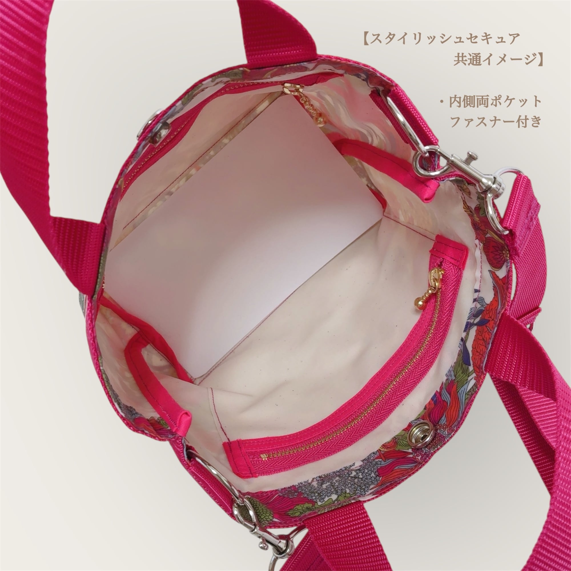 内側に2つのファスナー付きポケット。