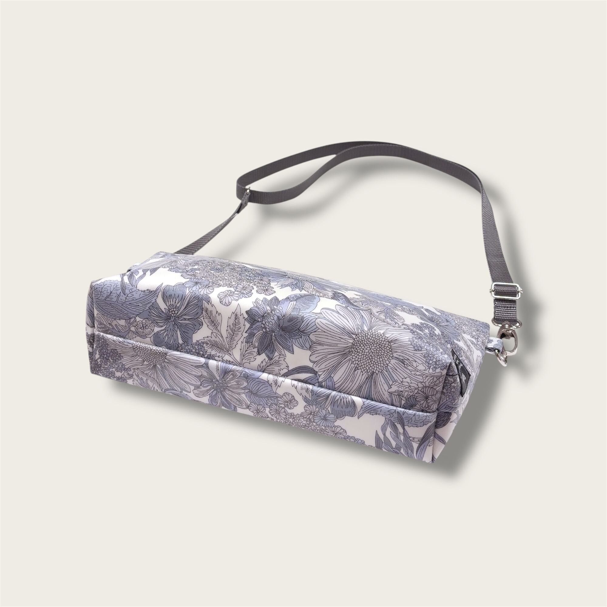 雨の日はもちろん、汚れてもさっと拭き取れ、全面にアルコール除菌もしていただける実用的で扱いやすいリバティプリントのラミネート生地でお作りしたショルダーバッグです。