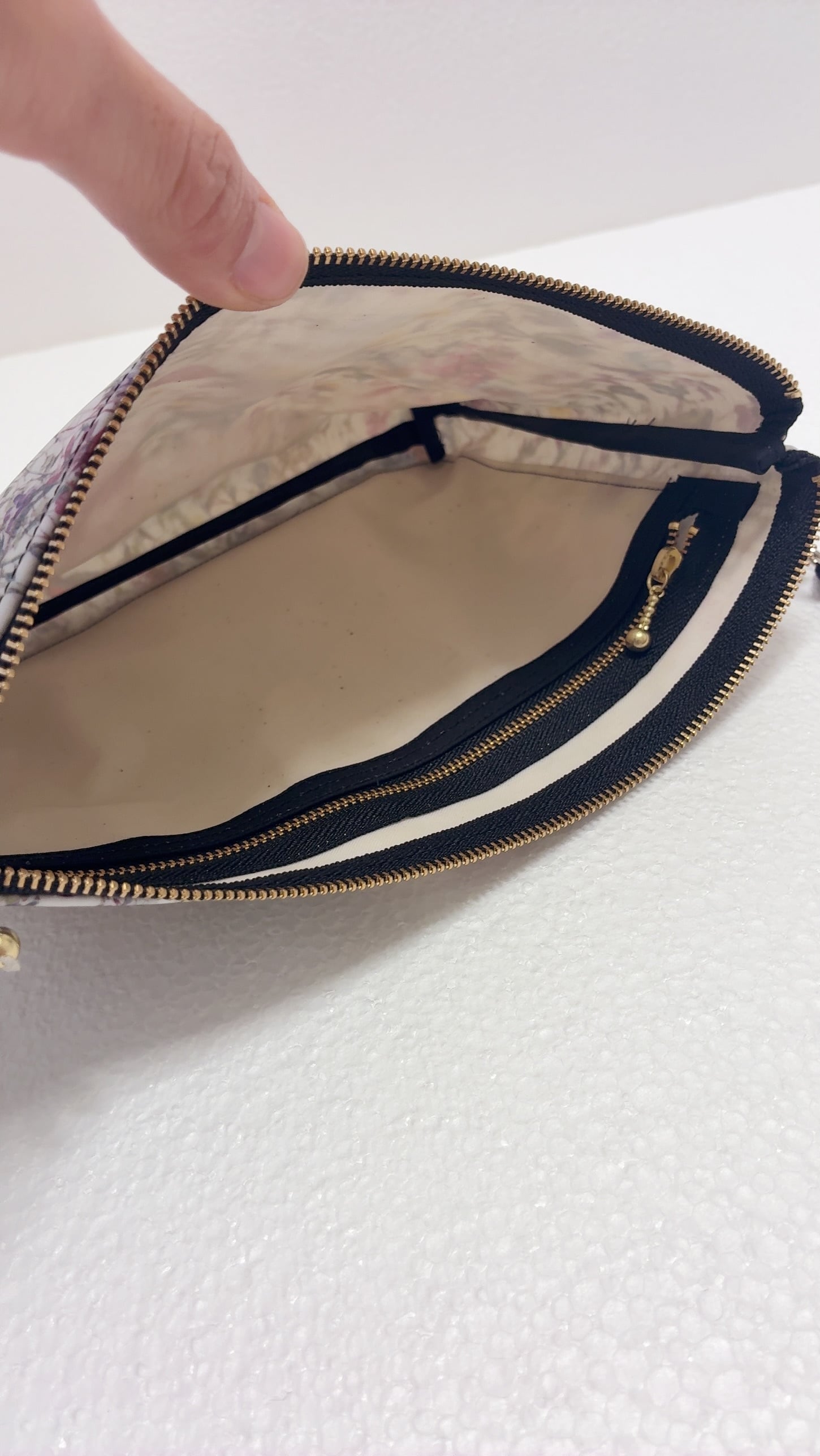 長財布やスマホ、小さいポーチなど貴重品を身につけて持っていただくのに最適なサイズです。
