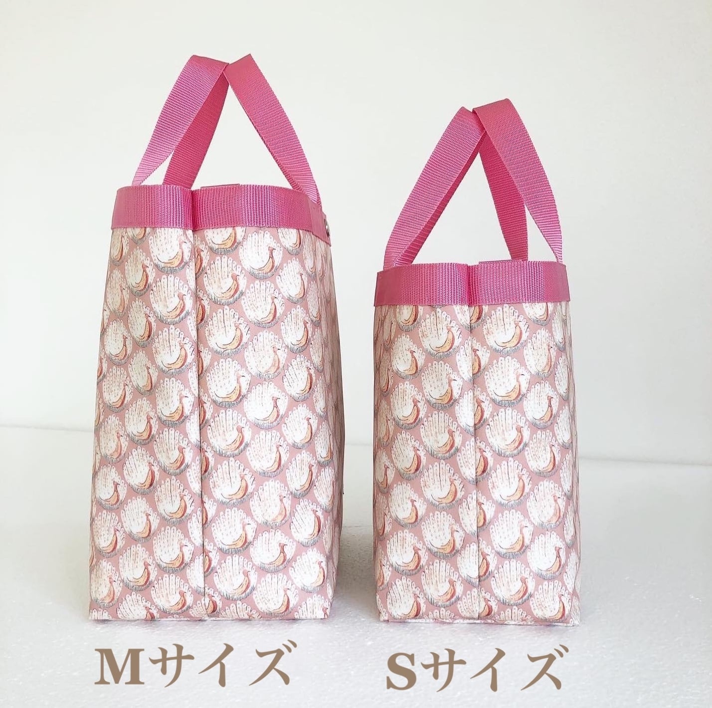 Sサイズは、お財布、化粧ポーチ、お弁当、水筒、手帳などが入るサイズです