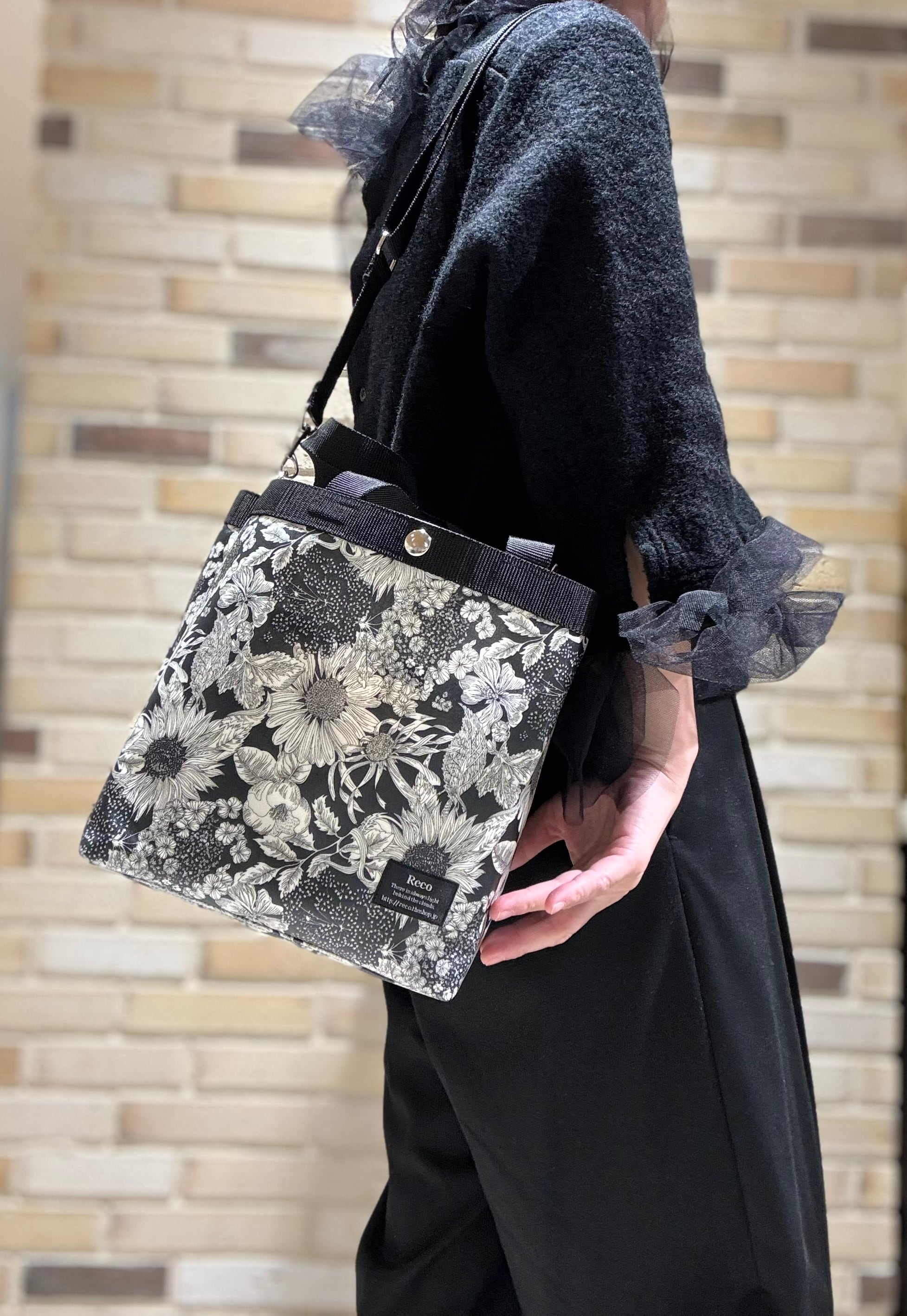 ⚫︎表布:リバティプリント 綿100%つや消しラミネート(ビニールコーティングした)生地