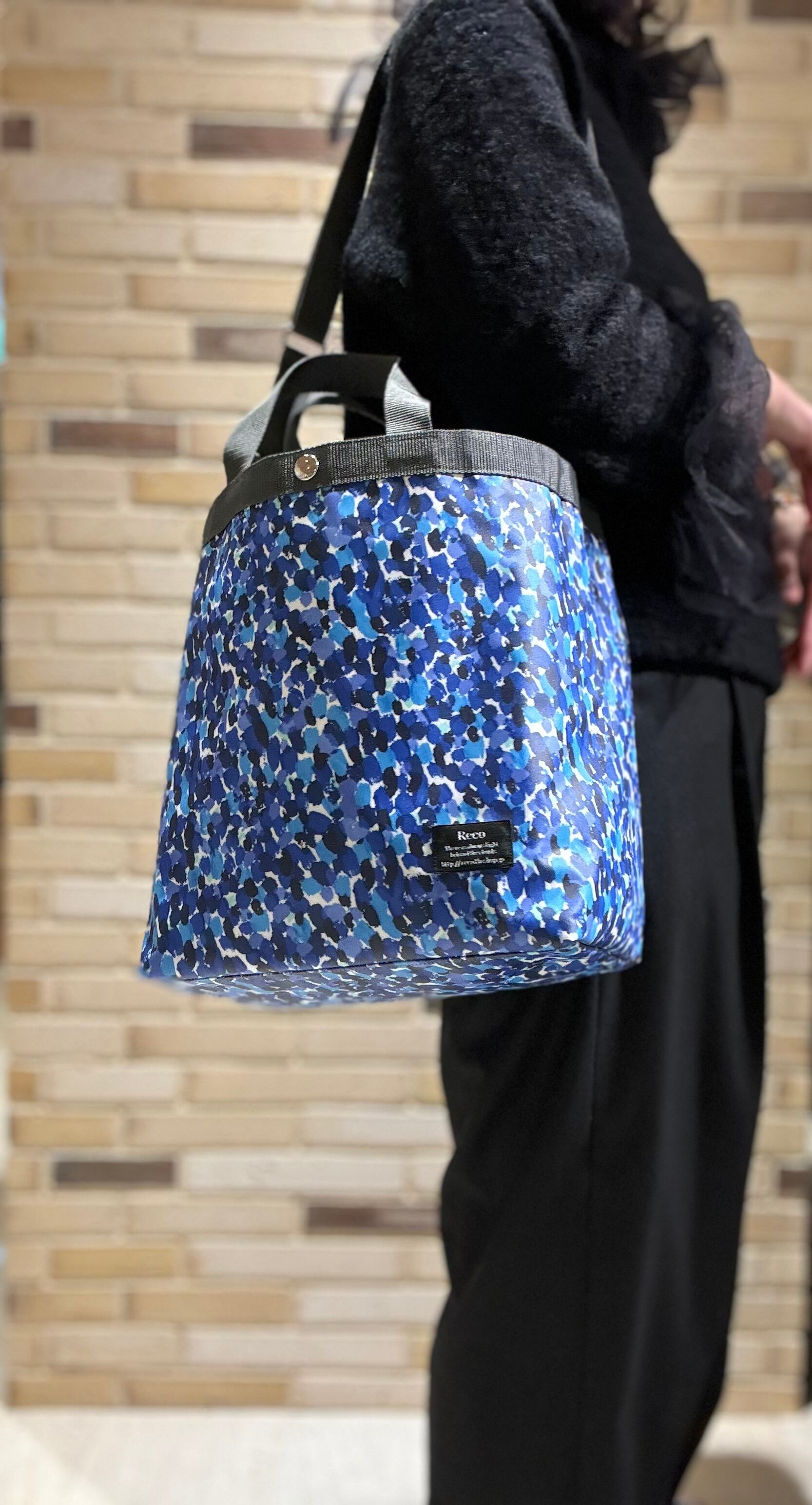 【数量限定柄】トートバッグ Mサイズ リバティ ラミネート モーニングデュウ ブルー