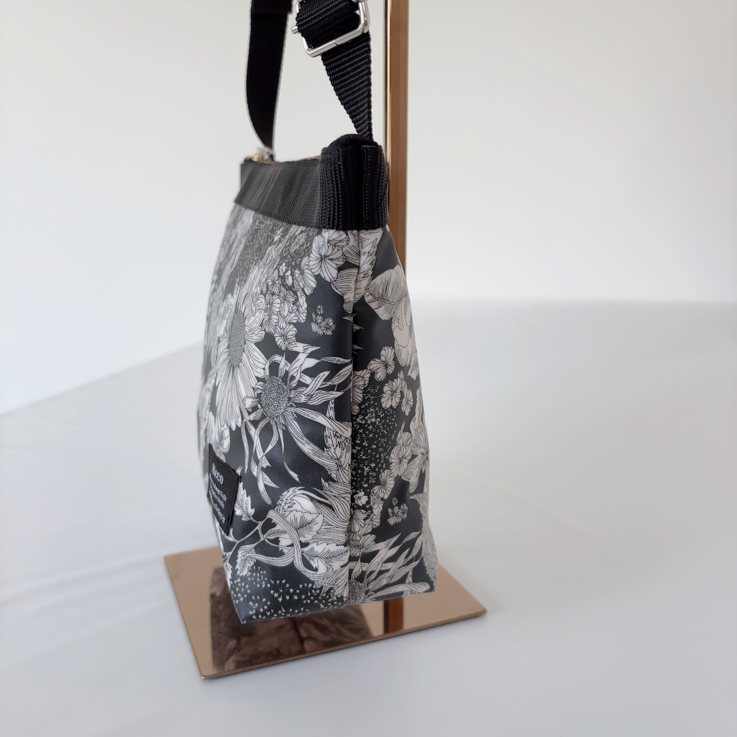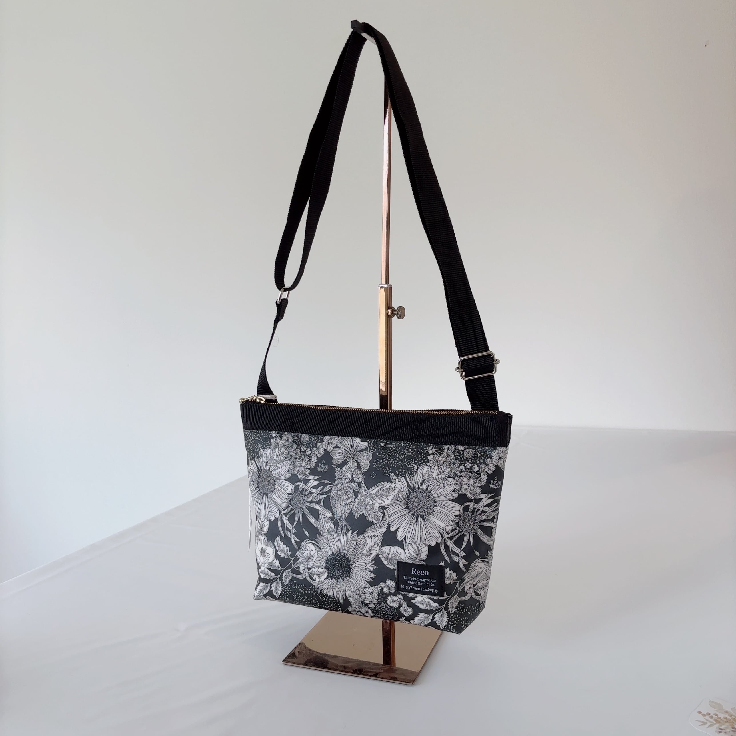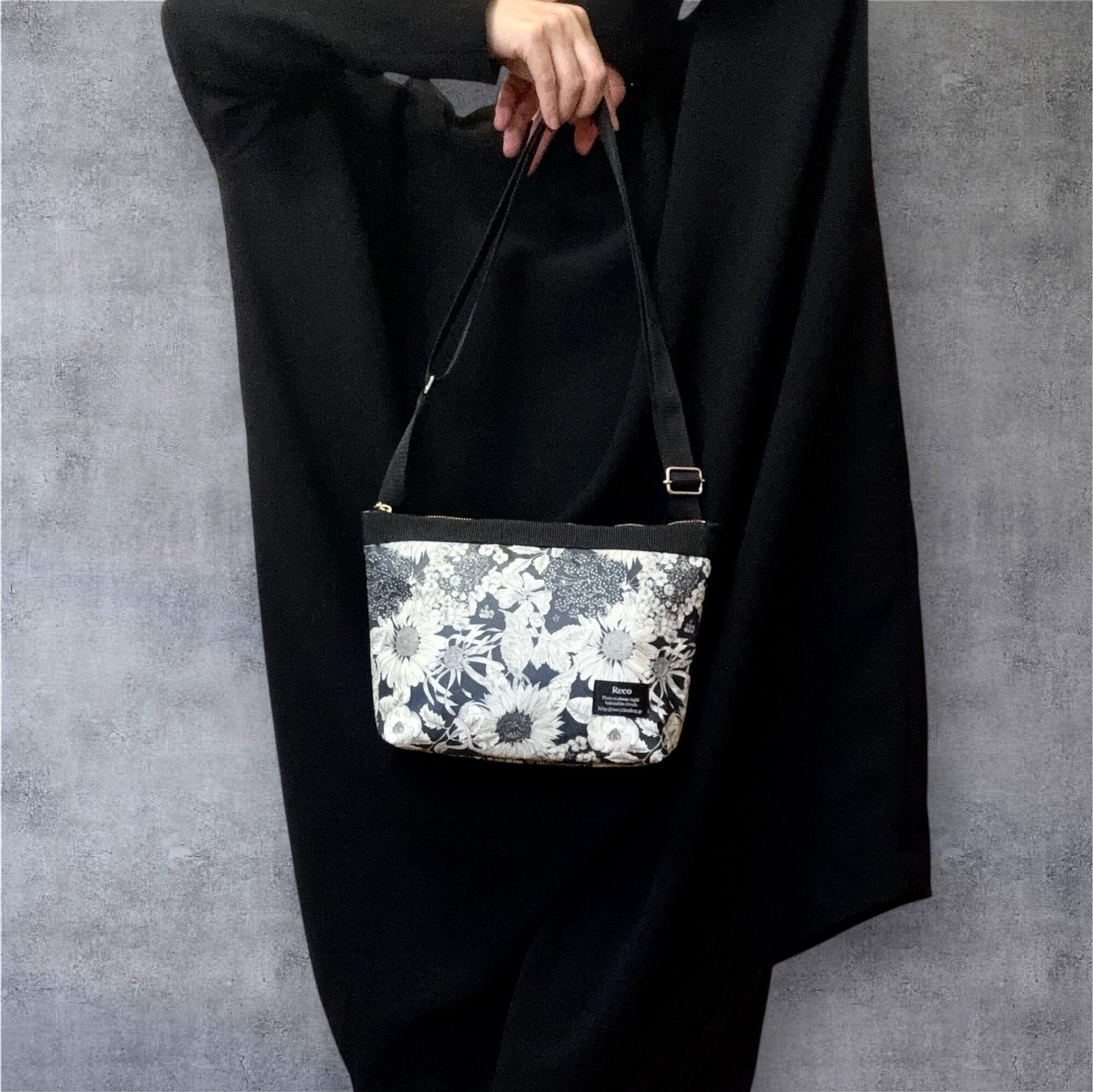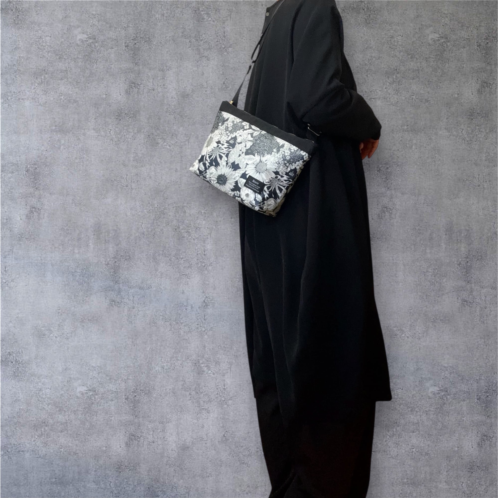 雨の日は、もちろん、汚れても、さっと拭き取れ、全面アルコール除菌もしていただける実用的で扱いやすいリバティプリントのラミネート生地でお作りした、ショルダーバッグです